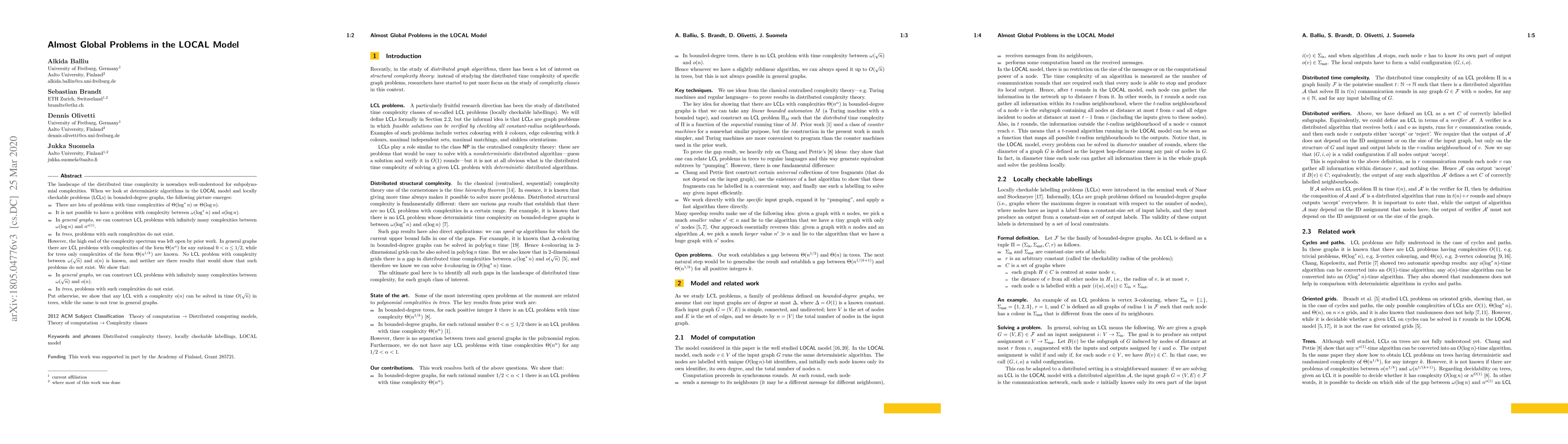 Researchers show that in general graphs, LCL problems can have complexities between φ(√ n) and o(n), while in trees such complexities do not exist.