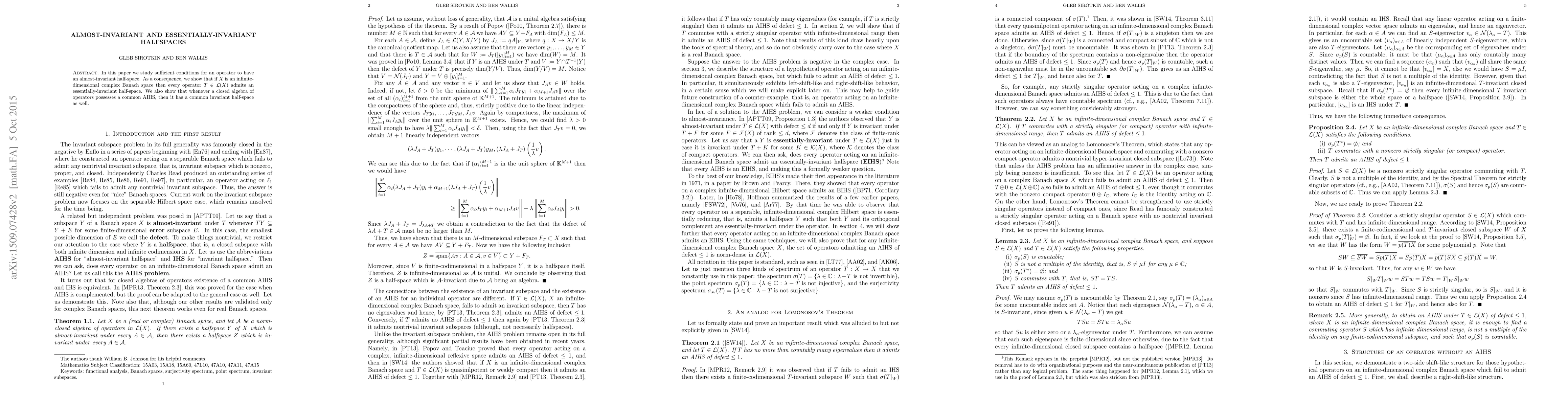 This paper investigates sufficient conditions for an operator to have an almost-invariant half-space and proves that every operator on an infinite-dimensional complex Banach space admits an essentially-invariant half-space. It also demonstrates that a closed algebra of operators with a common almost-invariant half-space must have a common invariant half-space.