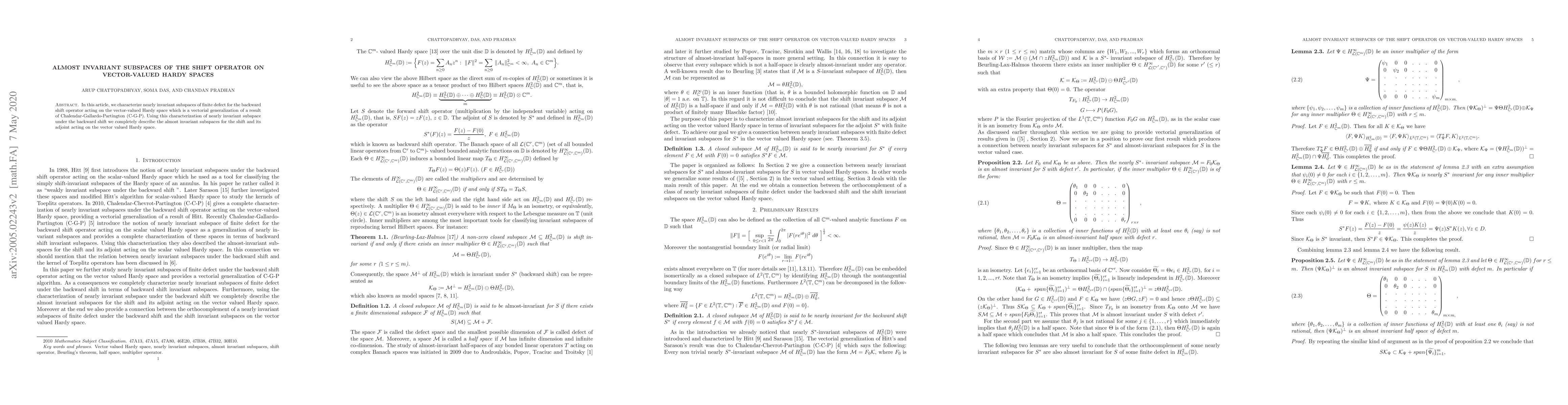 Summary: The paper characterizes nearly invariant subspaces of finite defect for the backward shift operator on vector-valued Hardy spaces, extending prior results, and fully describes almost invariant subspaces for both the shift and its adjoint in this vectorial setting.