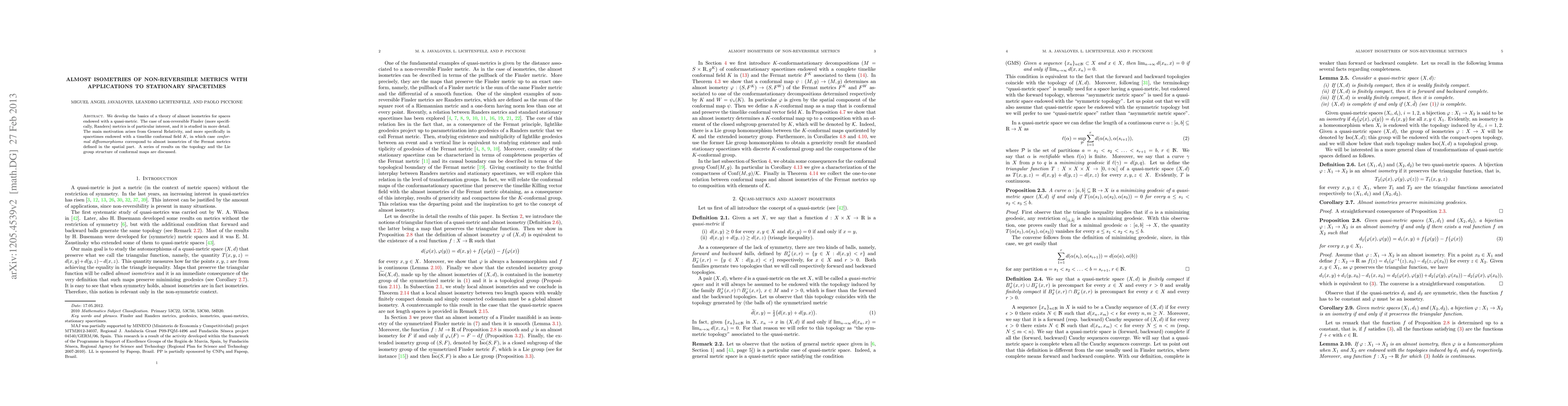 This paper introduces a theory of almost isometries for quasi-metric spaces, focusing on non-reversible Randers metrics. It explores applications in General Relativity, particularly in stationary spacetimes with timelike conformal fields, where conformal diffeomorphisms relate to almost isometries of Fermat metrics.
