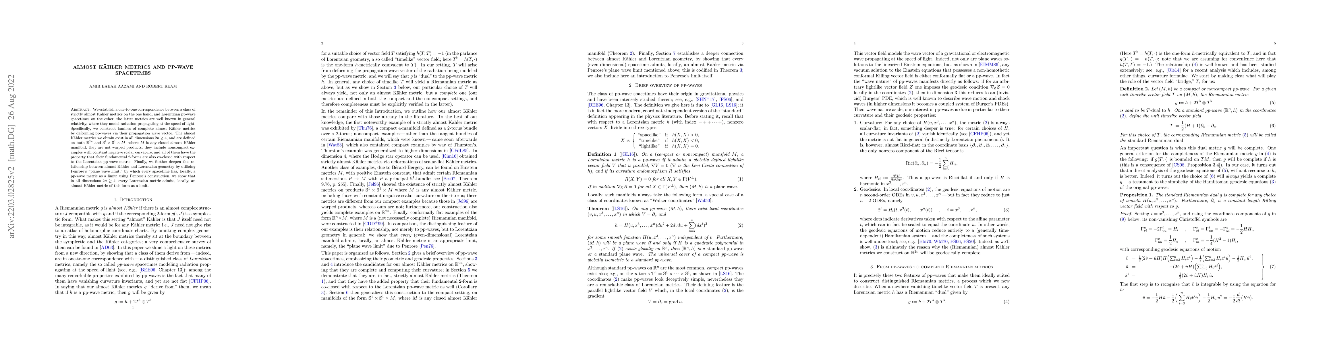 We establish a one-to-one correspondence between a class of strictly almost K\"ahler metrics on the one hand, and Lorentzian pp-wave spacetimes on the other; the latter metrics are well known in general relativity, where they model radiation propagating at the speed of light. Specifically, we construct families of complete almost K\"ahler metrics by deforming pp-waves via their propagation wave vector. The almost K\"ahler metrics we obtain exist in all dimensions $2n \geq 4$, and are defined on both $\mathbb{R}^{2n}$ and $\mathbb{S}^1\times\mathbb{S}^1 \times M$, where $M$ is any closed almost K\"ahler manifold; they are not warped products, they include noncompact examples with constant negative scalar curvature, and all of them have the property that their fundamental 2-forms are also co-closed with respect to the Lorentzian pp-wave metric. Finally, we further deepen this relationship between almost K\"ahler and Lorentzian geometry by utilizing Penrose's "plane wave limit," by which every spacetime has, locally, a pp-wave metric as a limit: using Penrose's construction, we show that in all dimensions $2n \geq 4$, every Lorentzian metric admits, locally, an almost K\"ahler metric of this form as a limit.