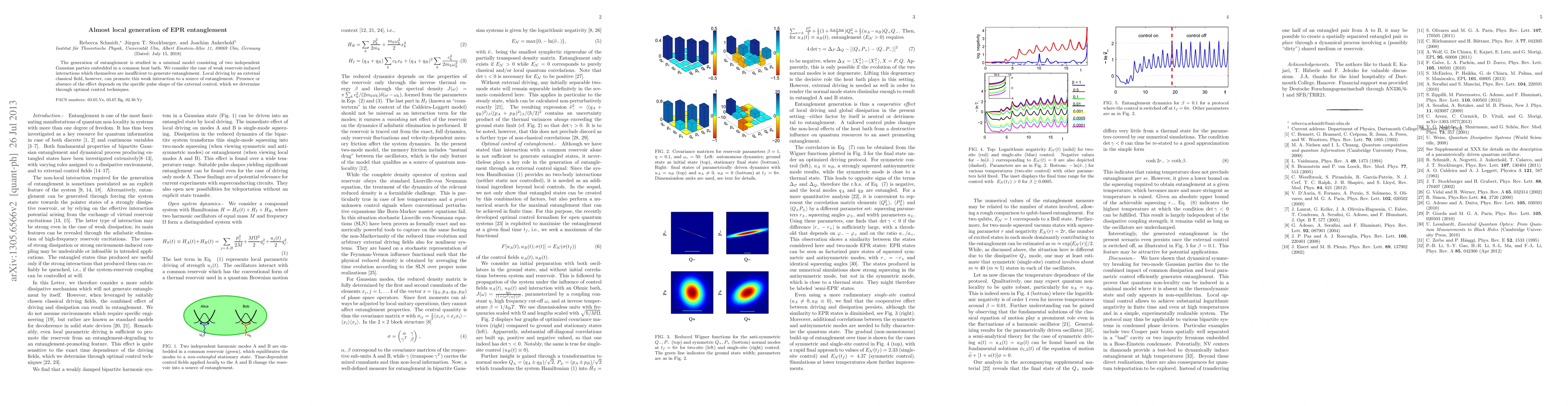 The generation of entanglement is studied in a minimal model consisting of two independent Gaussian parties embedded in a common heat bath and subject to local control signals. Neither the reservoir alone nor the external driving can induce quantum non-locality but only the cooperative impact of both in non-equilibrium. It is shown that this corresponds to a dynamical symmetry breaking between the modes. By applying optimal control protocols substantial entanglement is generated even for single-site control and at higher temperatures and is preserved after the control is switched off.