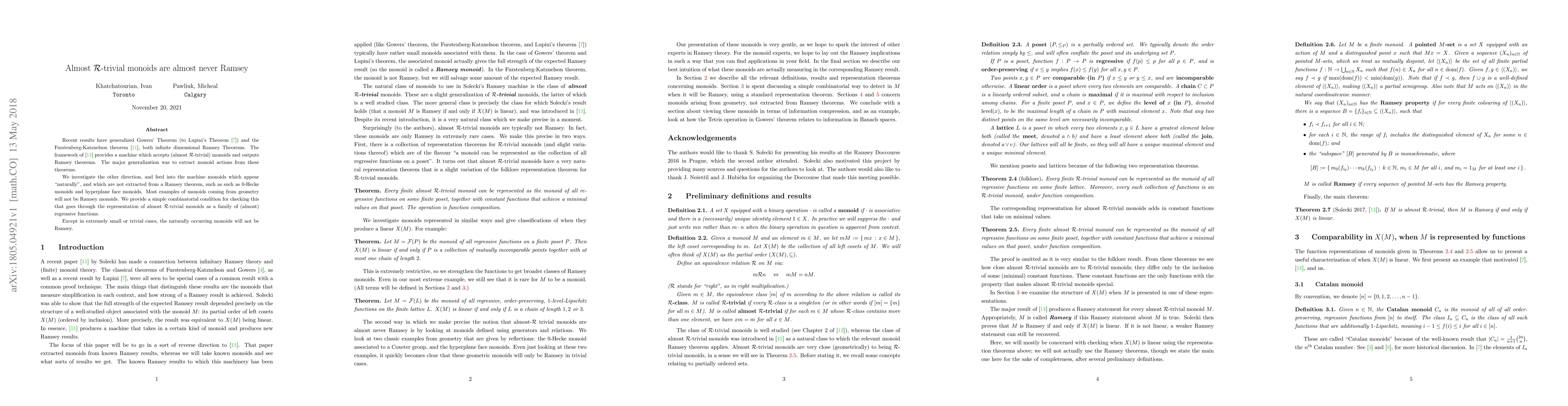 This paper explores the relationship between almost $\mathcal{R}$-trivial monoids and Ramsey theorems, demonstrating that naturally occurring monoids, such as $0$-Hecke and hyperplane face monoids, typically do not satisfy Ramsey conditions. It establishes a combinatorial criterion to verify this, concluding that most naturally occurring monoids are unlikely to be Ramsey.