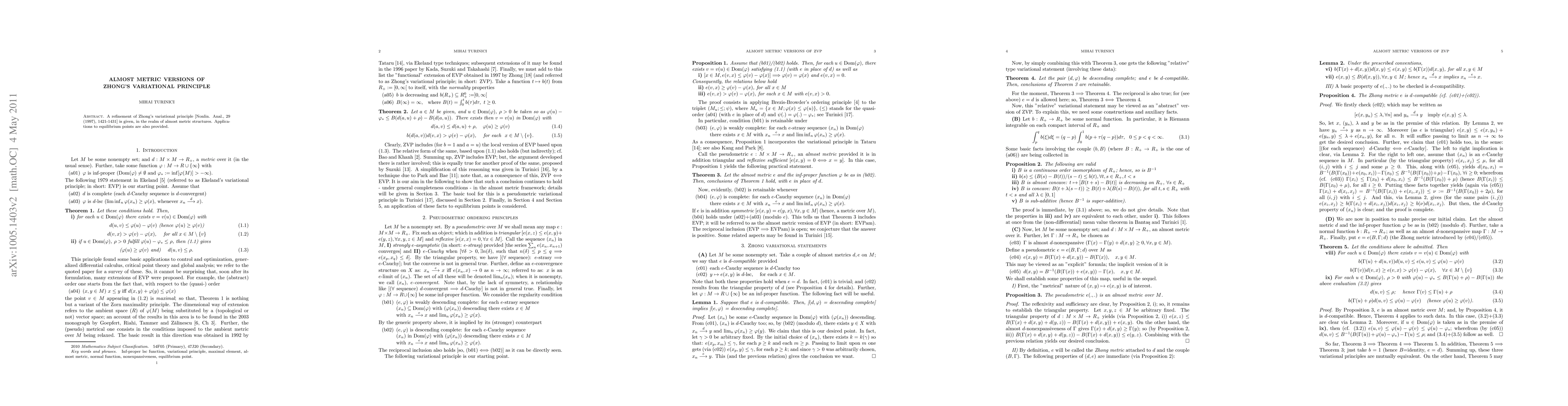 A refinement of Zhong's variational principle [Nonlin. Anal., 29 (1997), 1421-1431] is given, in the realm of almost metric structures. Applications to equilibrium points are also provided.