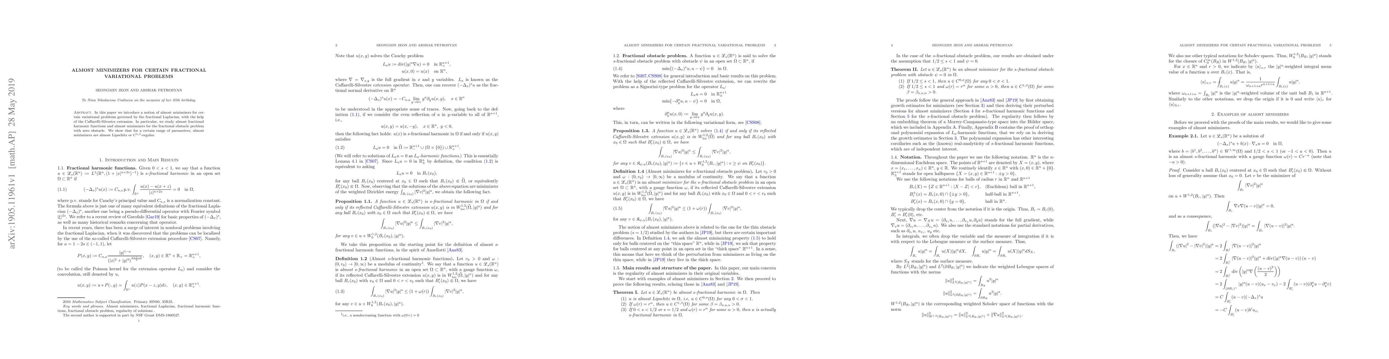 In this paper we introduce a notion of almost minimizers for certain variational problems governed by the fractional Laplacian, with the help of the Caffarelli-Silvestre extension. In particular, we study almost fractional harmonic functions and almost minimizers for the fractional obstacle problem with zero obstacle. We show that for a certain range of parameters, almost minimizers are almost Lipschitz or $C^{1,\beta}$-regular.