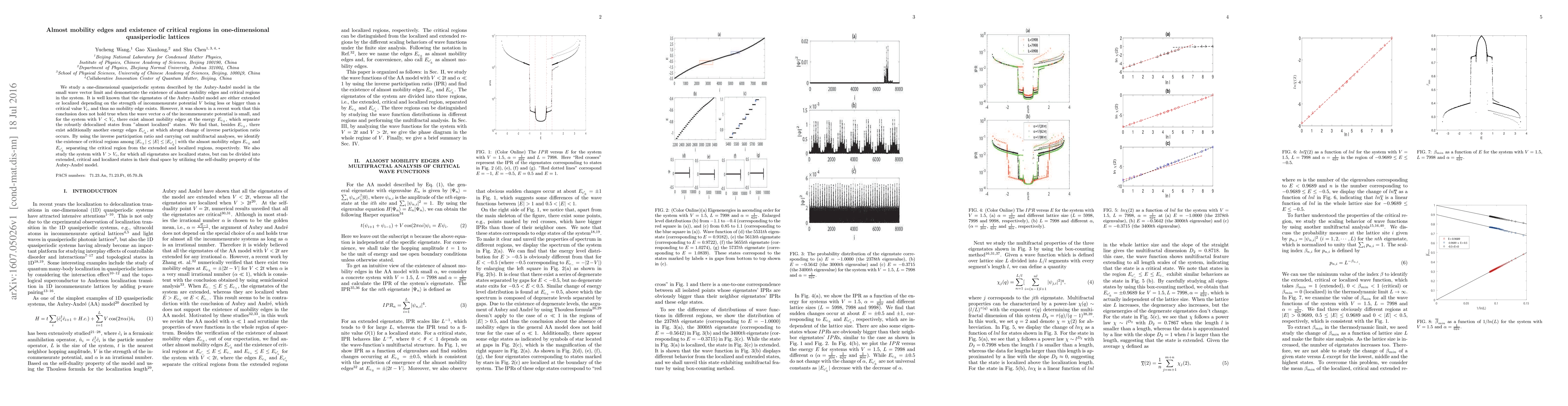 This paper investigates a one-dimensional quasiperiodic Aubry-André model, revealing the existence of almost mobility edges and critical regions when the wave vector is small. It identifies additional energy edges that mark abrupt changes in the inverse participation ratio, and uses multifractal analysis to delineate critical regions between these edges, distinguishing extended, critical, and localized states.
