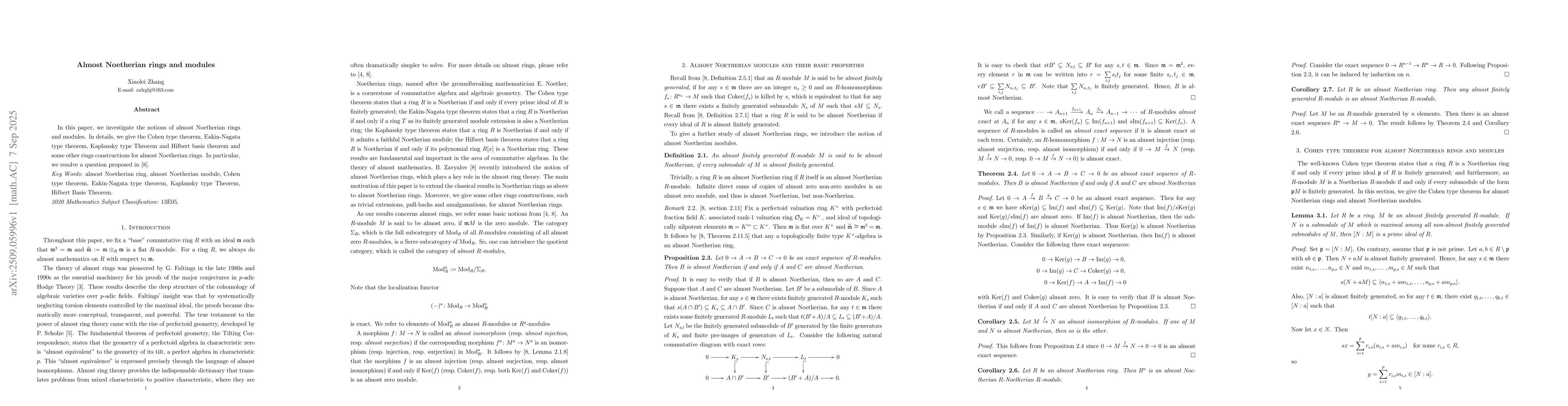 In this paper, we investigate the notions of almost Noetherian rings and modules. In details, we give the Cohen type theorem, Eakin-Nagata type theorem, Kaplansky type Theorem and Hilbert basis theorem and some other rings constructions for almost Noetherian rings. In particular, we resolve a question proposed in [8].