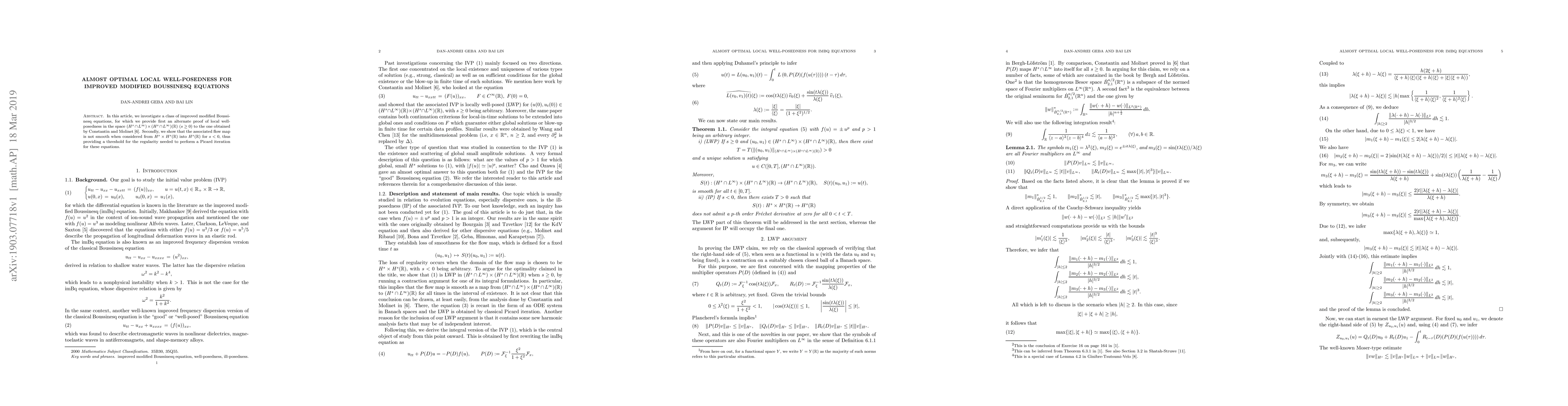 Researchers improve local well-posedness for modified Boussinesq equations, finding a threshold for regularity required to perform a Picard iteration; they also provide an alternate proof of local well-posedness in a specific space.