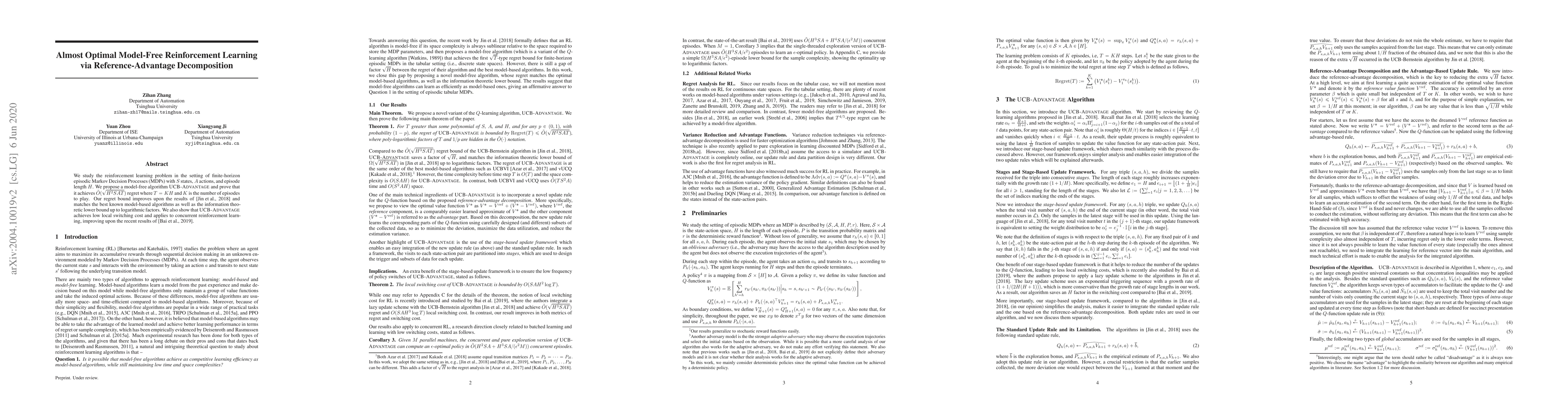 This paper proposes a model-free reinforcement learning algorithm, UCB-Advantage, for finite-horizon episodic MDPs, achieving $\tilde{O}(\sqrt{H^2SAT})$ regret, which nearly matches the best known model-based results and improves upon previous model-free approaches. The algorithm also demonstrates low local switching cost and concurrent learning capabilities.