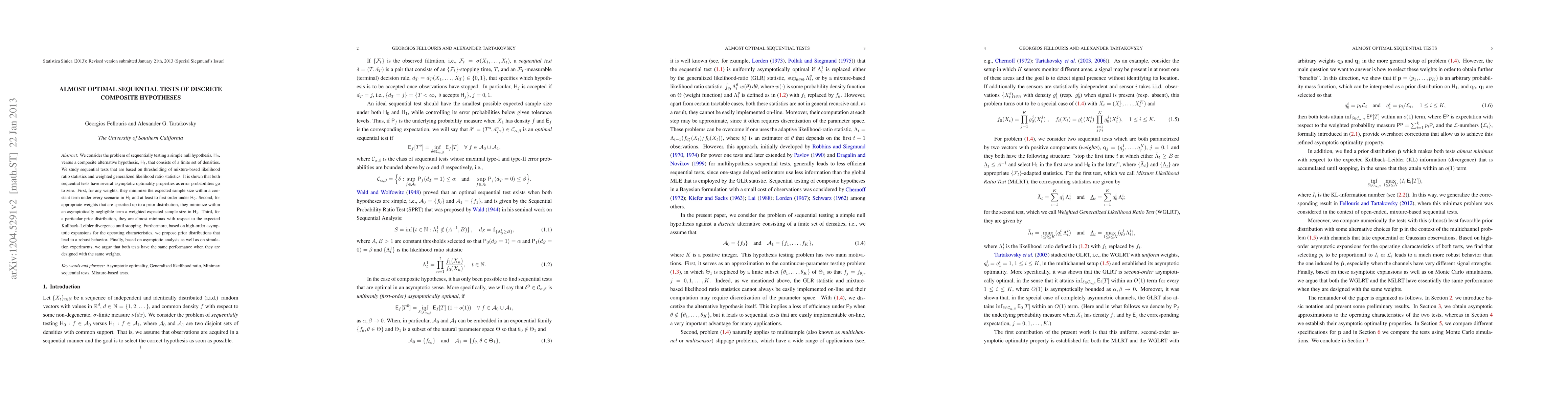 This paper develops sequential tests for a simple null versus a composite alternative hypothesis, showing that these tests achieve near-optimality in minimizing expected sample size under various scenarios. The tests are robust and perform similarly when using the same weights, with specific prior distributions enhancing their minimax properties.