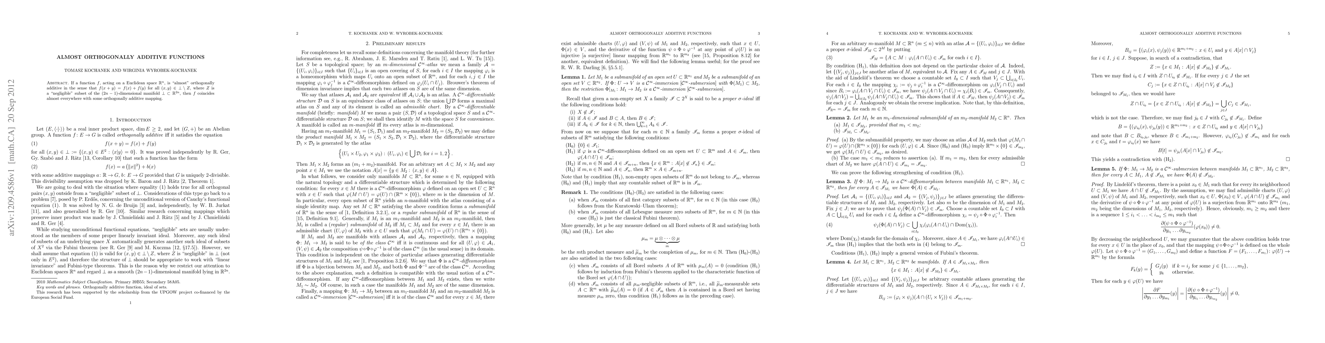 This paper explores functions on Euclidean space that are "almost orthogonally additive," meaning they satisfy the additive property except on a negligible subset. It concludes that such functions coincide almost everywhere with true orthogonally additive mappings.