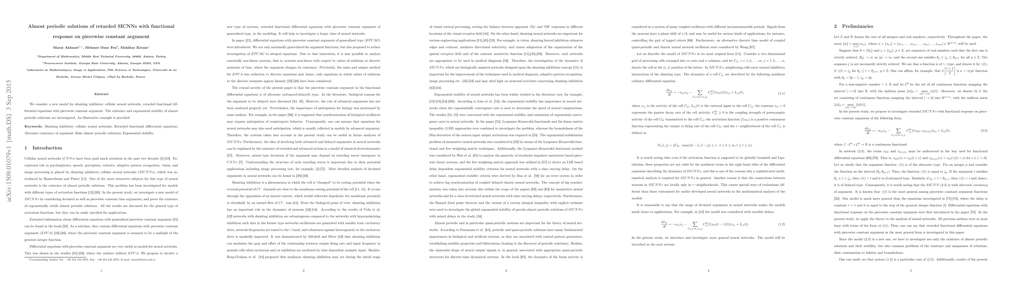 This paper explores shunting inhibitory cellular neural networks modeled by retarded functional differential equations with piecewise constant arguments, proving the existence and exponential stability of their almost periodic solutions, with an illustrative example provided.