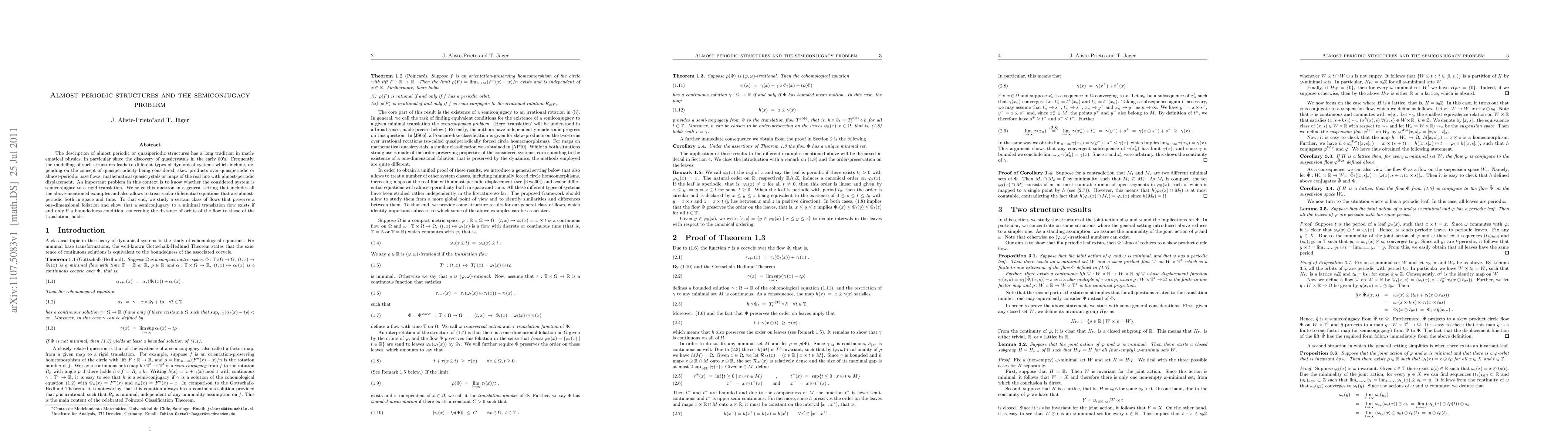 Researchers solve a key problem in studying almost periodic structures in mathematical physics by showing that semiconjugacy to a rigid translation exists under certain conditions. They establish a boundedness condition necessary for this connection to hold.