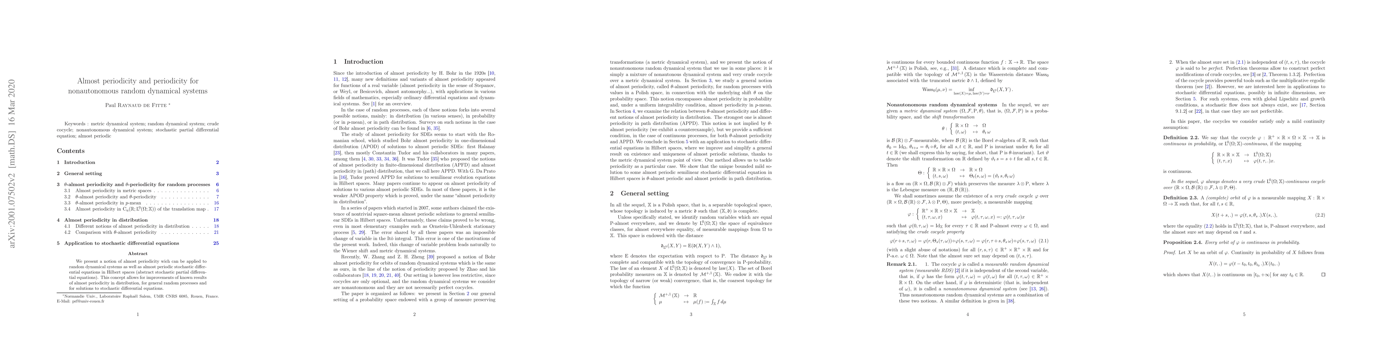 The paper introduces a novel notion of almost periodicity applicable to random dynamical systems and abstract stochastic partial differential equations (SPDEs) in Hilbert spaces, leading to improvements in known results.
