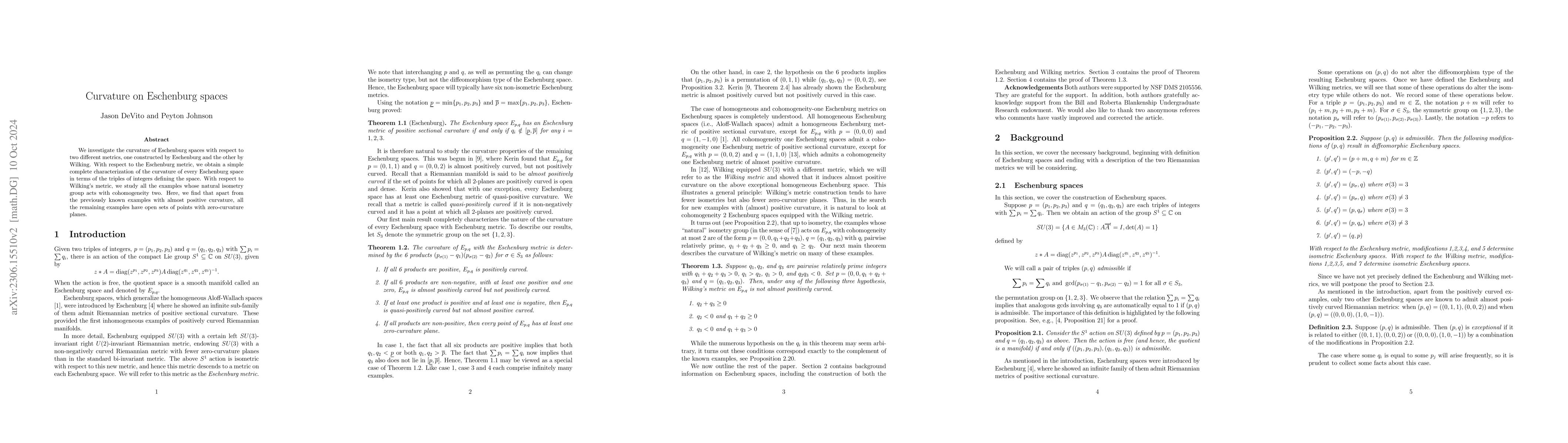 This paper examines the curvature properties of Eschenburg spaces under two metrics—Eschenburg's and Wilking's—demonstrating that Wilking's metric on Eschenburg spaces of cohomogeneity ≤2 is almost positively curved, except for one case, and fully characterizes the curvature under Eschenburg's metric.
