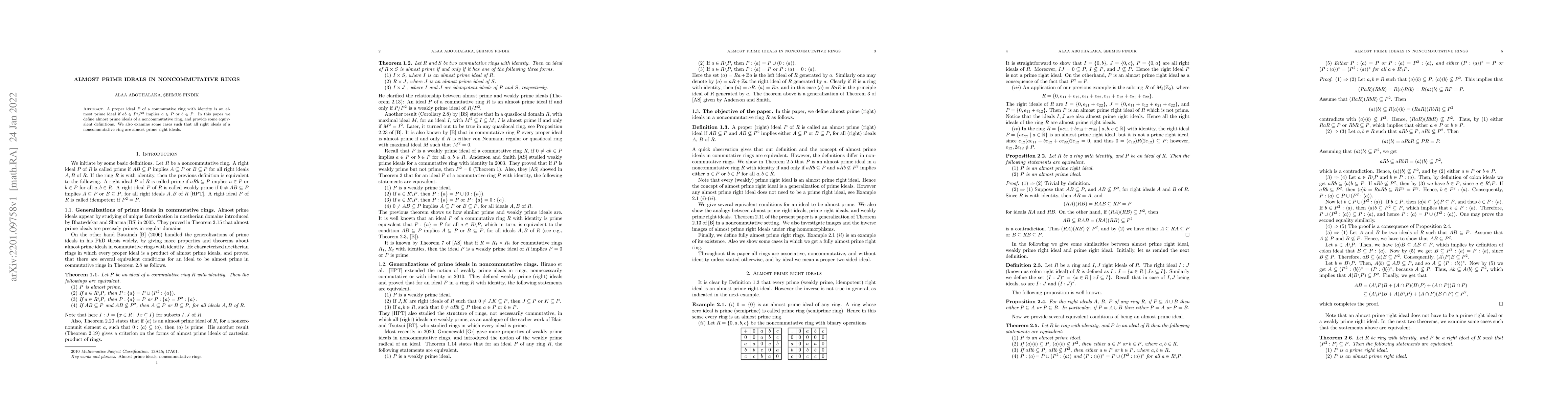 This paper defines almost prime ideals in noncommutative rings and offers equivalent definitions, extending the concept from commutative rings. It also explores cases where all right ideals in a noncommutative ring are almost prime right ideals.