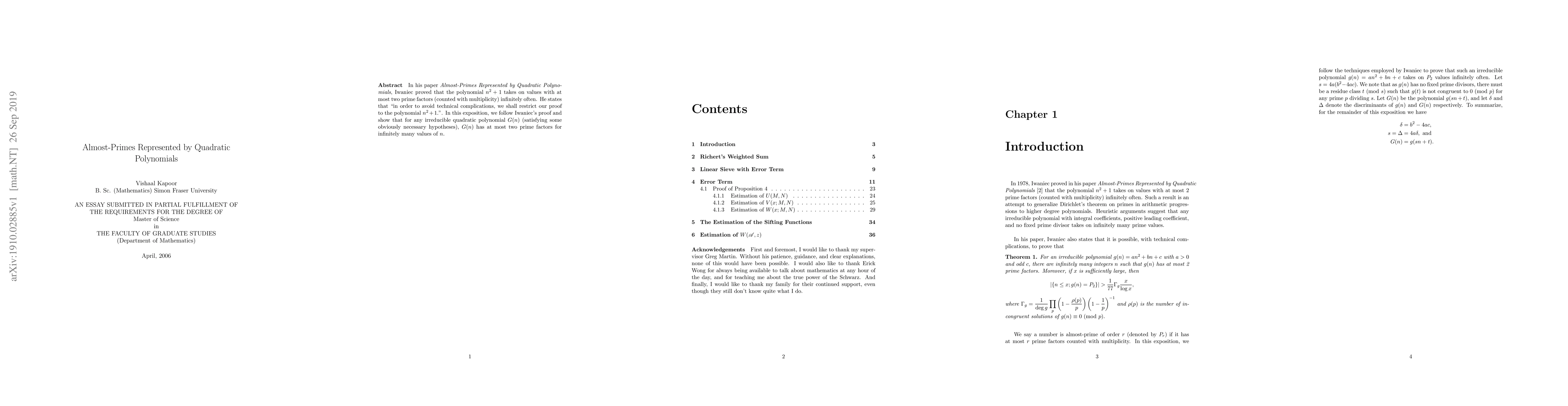 Iwaniec's paper proves that the polynomial \(n^2 + 1\) produces values with at most two prime factors infinitely often. This exposition extends Iwaniec's proof to show that any irreducible quadratic polynomial \(G(n)\), under certain conditions, also yields values with at most two prime factors infinitely often.