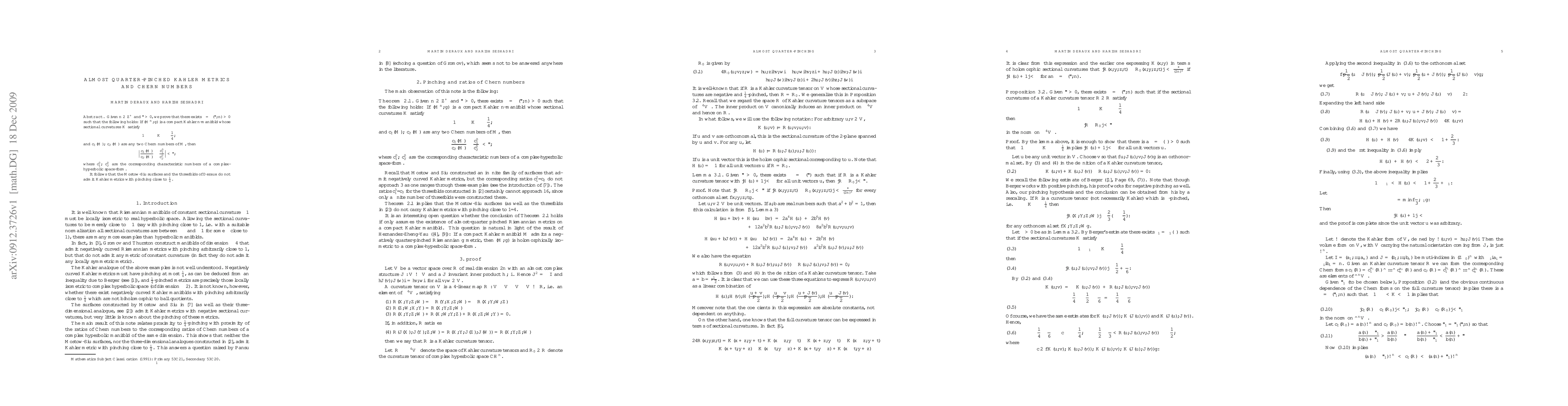 This paper demonstrates that compact Kähler manifolds with almost 1/4-pinched sectional curvatures have Chern number ratios similar to those of complex hyperbolic space forms, concluding that Mostow-Siu surfaces and their three-dimensional counterparts cannot have Kähler metrics close to 1/4-pinched.