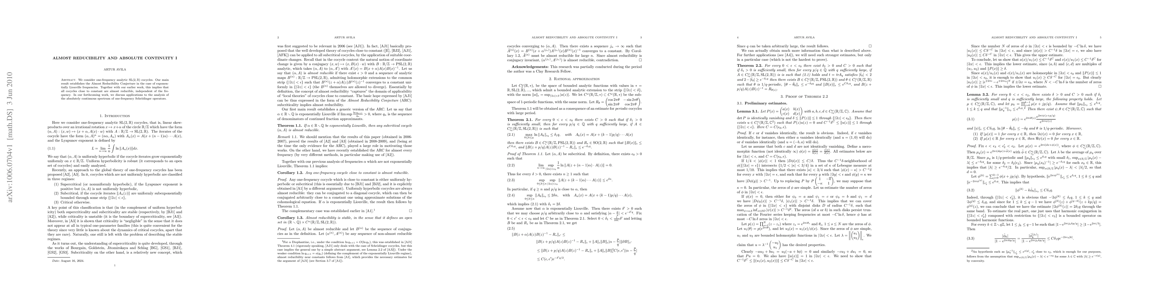 Summary: The paper establishes the Almost Reducibility Conjecture for one-frequency analytic SL(2,R) cocycles with exponentially Liouville frequencies, implying all nearby cocycles are almost reducible. Future work will explore applications to the absolutely continuous spectrum of one-frequency Schrödinger operators.