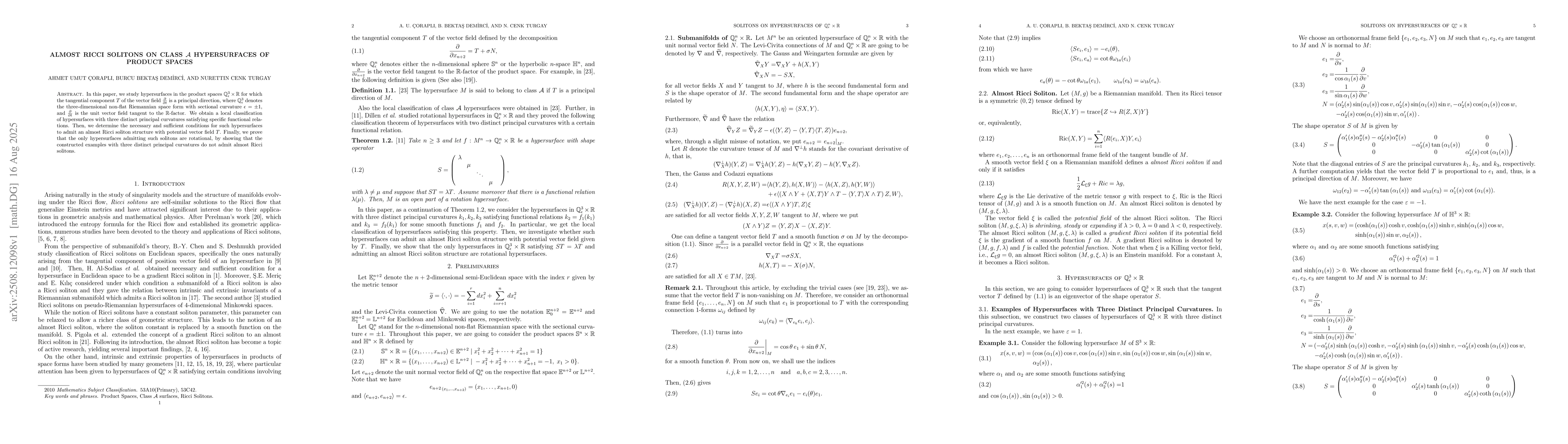 In this paper, we study hypersurfaces in the product spaces $\mathbb{Q}_{\epsilon}^3 \times \mathbb{R}$ for which the tangential component $T$ of the vector field $\frac{\partial}{\partial t}$ is a principal direction, where $\mathbb{Q}_{\epsilon}^3$ denotes the three-dimensional non-flat Riemannian space form with sectional curvature $\epsilon = \pm 1$, and $\frac{\partial}{\partial t}$ is the unit vector field tangent to the $\mathbb{R}$-factor. We obtain a local classification of hypersurfaces with three distinct principal curvatures satisfying specific functional relations. Then, we determine the necessary and sufficient conditions for such hypersurfaces to admit an almost Ricci soliton structure with potential vector field $T$. Finally, we prove that the only hypersurfaces admitting such solitons are rotational, by showing that the constructed examples with three distinct principal curvatures do not admit almost Ricci solitons.