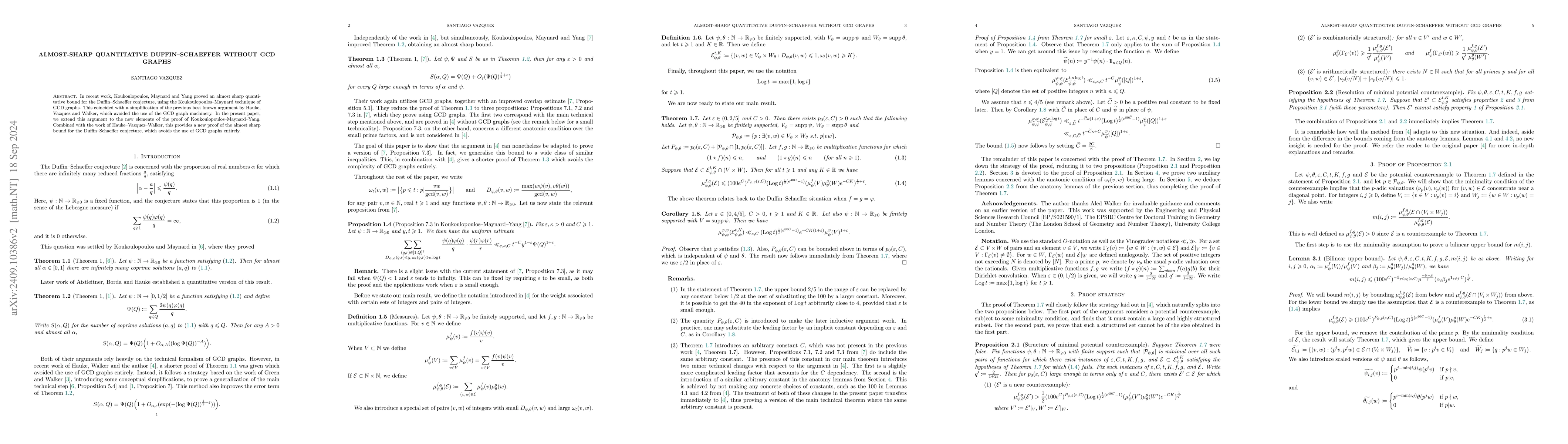 This paper extends the simplified proof technique of Hauke, Vazquez, and Walker to include the novel elements of the Koukoulopoulos-Maynard-Yang proof, achieving an almost sharp quantitative bound for the Duffin-Schaeffer conjecture without relying on GCD graphs.