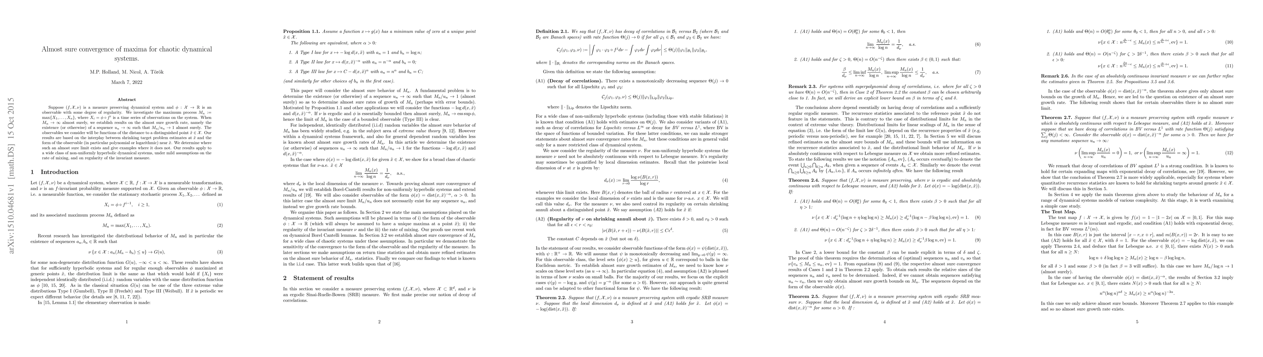 Suppose $(f,\mathcal{X},\nu)$ is a measure preserving dynamical system and $\phi:\mathcal{X}\to\mathbb{R}$ is an observable with some degree of regularity. We investigate the maximum process $M_n:=\max\{X_1,\ldots,X_n\}$, where $X_i=\phi\circ f^i$ is a time series of observations on the system. When $M_n\to\infty$ almost surely, we establish results on the almost sure growth rate, namely the existence (or otherwise) of a sequence $u_n\to\infty$ such that $M_n/u_n\to 1$ almost surely. The observables we consider will be functions of the distance to a distinguished point $\tilde{x}\in \mathcal{X}$. Our results are based on the interplay between shrinking target problem estimates at $\tilde{x}$ and the form of the observable (in particular polynomial or logarithmic) near $\tilde{x}$. We determine where such an almost sure limit exists and give examples where it does not. Our results apply to a wide class of non-uniformly hyperbolic dynamical systems, under mild assumptions on the rate of mixing, and on regularity of the invariant measure.