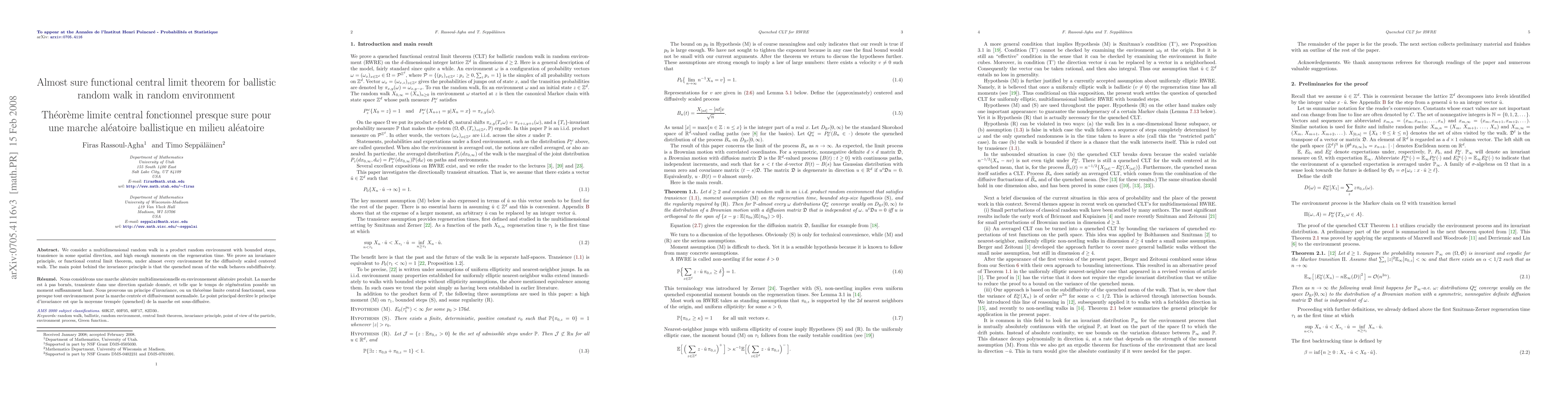 This paper proves an almost sure functional central limit theorem for a multidimensional ballistic random walk in a random environment, showing that the diffusively scaled centered walk converges under almost every environment. The key finding is that the quenched mean of the walk exhibits subdiffusive behavior.