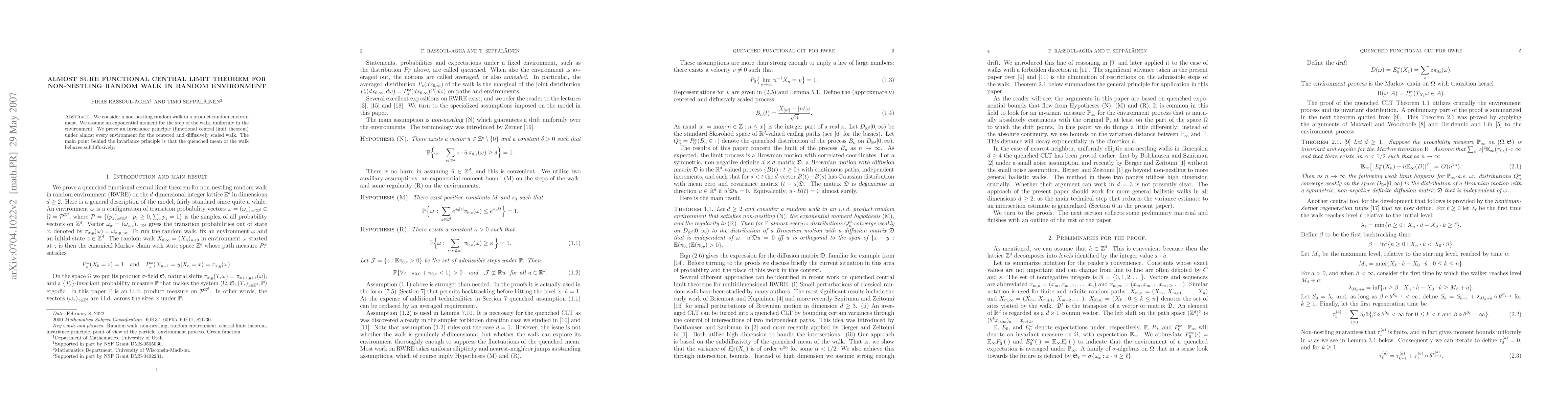This paper proves an almost sure functional central limit theorem for a non-nestling random walk in a random environment, showing that the walk converges to a Brownian motion under almost every environment, despite the quenched mean behaving subdiffusively. The step size of the walk is assumed to have an exponential moment.