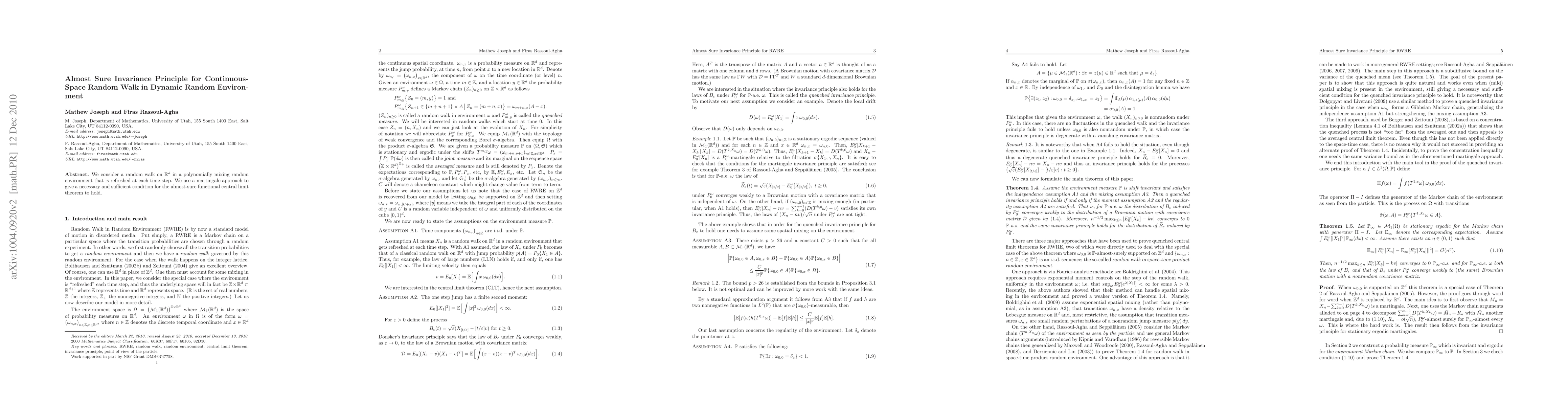Summary: This paper establishes a necessary and sufficient condition for the almost sure functional central limit theorem in a continuous-space random walk through a dynamically updated polynomially mixing random environment, utilizing a martingale approach.