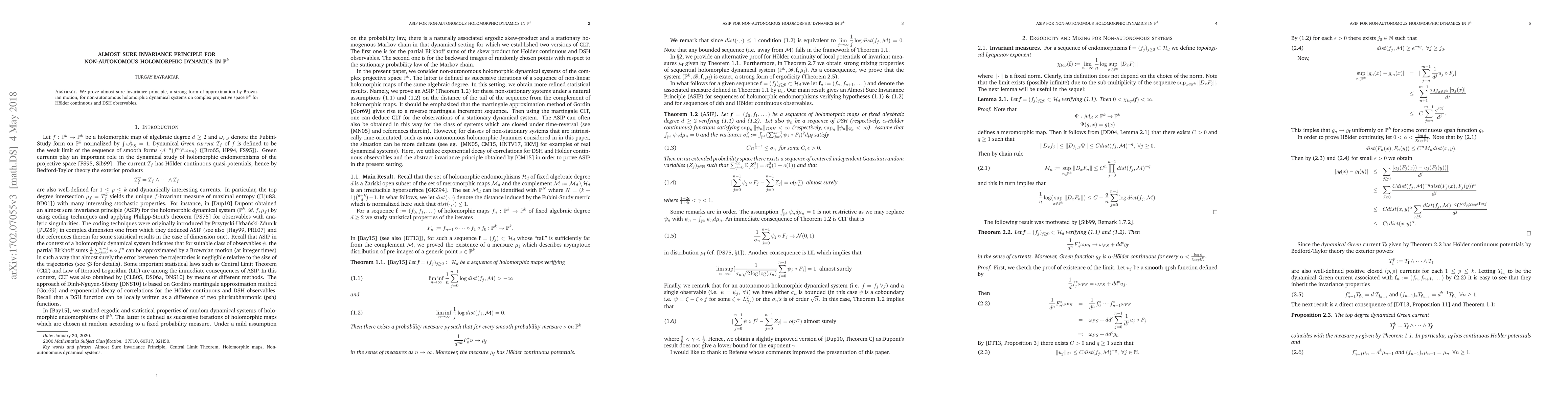 This paper proves an almost sure invariance principle for non-autonomous holomorphic dynamics on complex projective space, showing that Brownian motion approximates these systems with high probability.