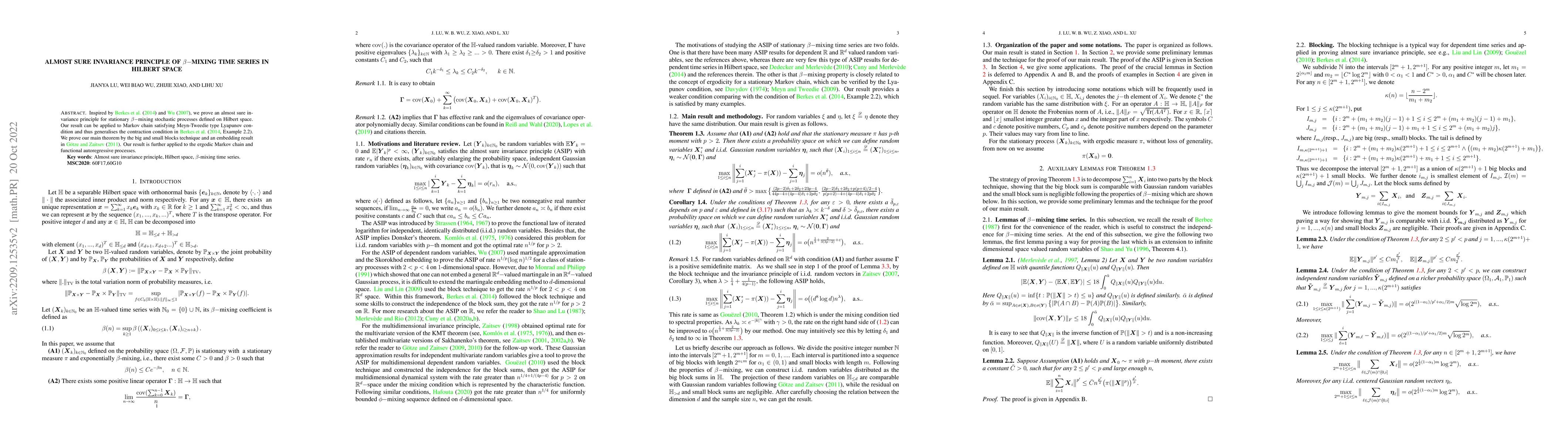 Inspired by \citet{Berkes14} and \citet{Wu07}, we prove an almost sure invariance principle for stationary $\beta-$mixing stochastic processes defined on Hilbert space. Our result can be applied to Markov chain satisfying Meyn-Tweedie type Lyapunov condition and thus generalises the contraction condition in \citet[Example 2.2]{Berkes14}. We prove our main theorem by the big and small blocks technique and an embedding result in \citet{gotze2011estimates}. Our result is further applied to the ergodic Markov chain and functional autoregressive processes.