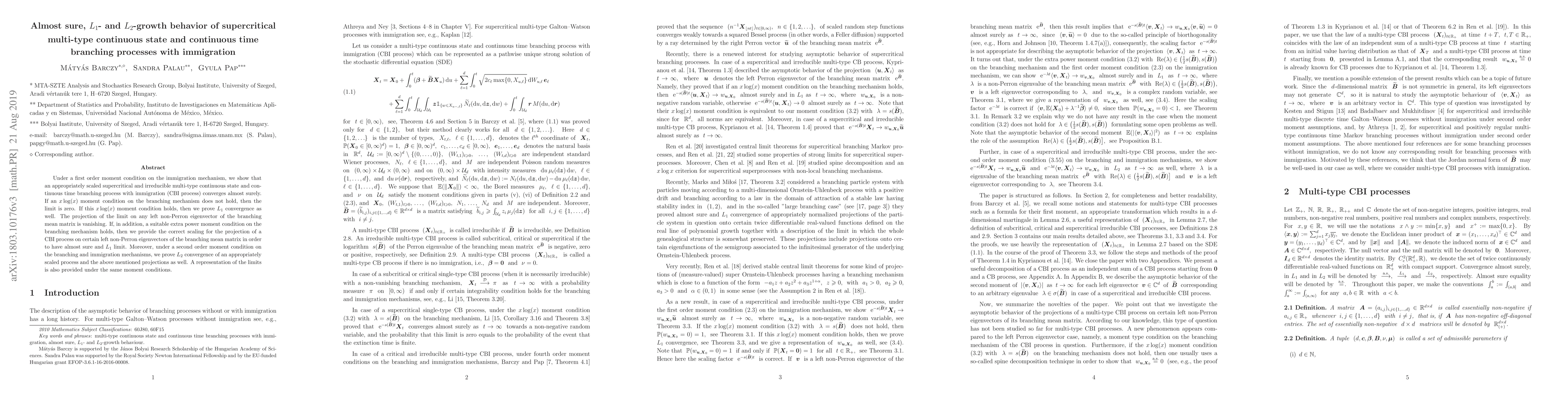 Under a first order moment condition on the immigration mechanism, we show that an appropriately scaled supercritical and irreducible multi-type continuous state and continuous time branching process with immigration (CBI process) converges almost surely. If an $x \log(x)$ moment condition on the branching mechanism does not hold, then the limit is zero. If this $x \log(x)$ moment condition holds, then we prove $L_1$ convergence as well. The projection of the limit on any left non-Perron eigenvector of the branching mean matrix is vanishing. If, in addition, a suitable extra power moment condition on the branching mechanism holds, then we provide the correct scaling for the projection of a CBI process on certain left non-Perron eigenvectors of the branching mean matrix in order to have almost sure and $L_1$ limit. Moreover, under a second order moment condition on the branching and immigration mechanisms, we prove $L_2$ convergence of an appropriately scaled process and the above mentioned projections as well. A representation of the limits is also provided under the same moment conditions.