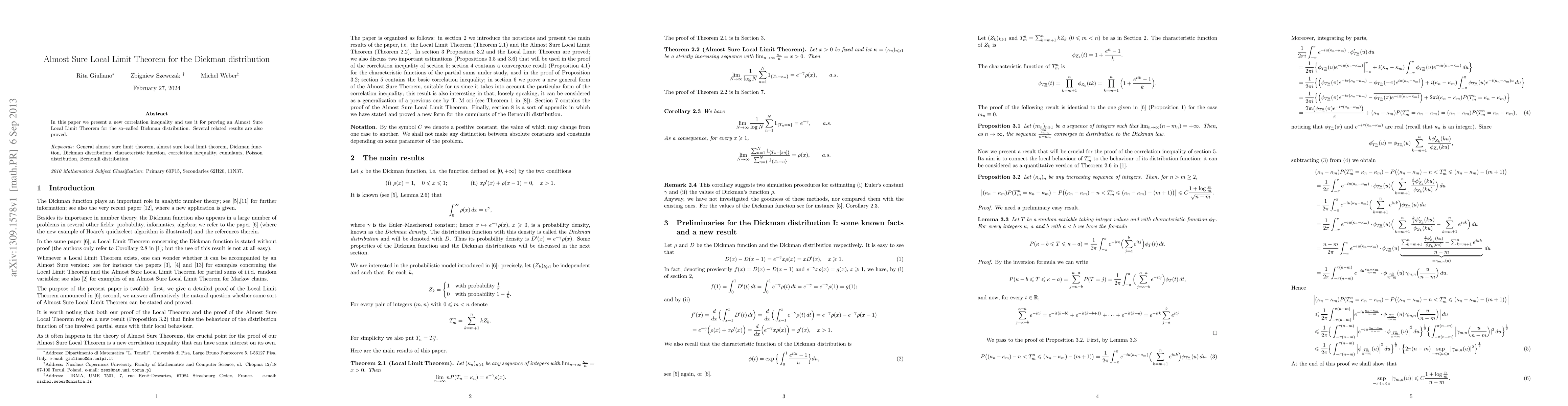 Summary: This paper establishes a new correlation inequality and utilizes it to prove an Almost Sure Local Limit Theorem for the Dickman distribution. Additionally, several related results are demonstrated.