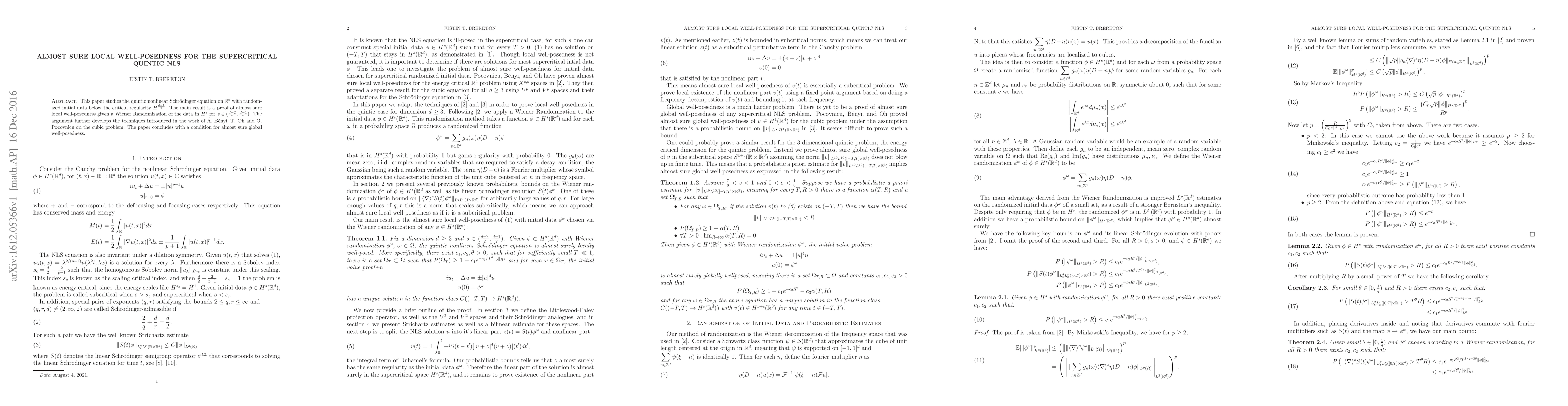 This paper proves almost sure local well-posedness for the supercritical quintic nonlinear Schrödinger equation with randomized initial data below the critical regularity, utilizing Wiener Randomization techniques. The findings extend methods from the cubic NLS problem and also provide conditions for almost sure global well-posedness.