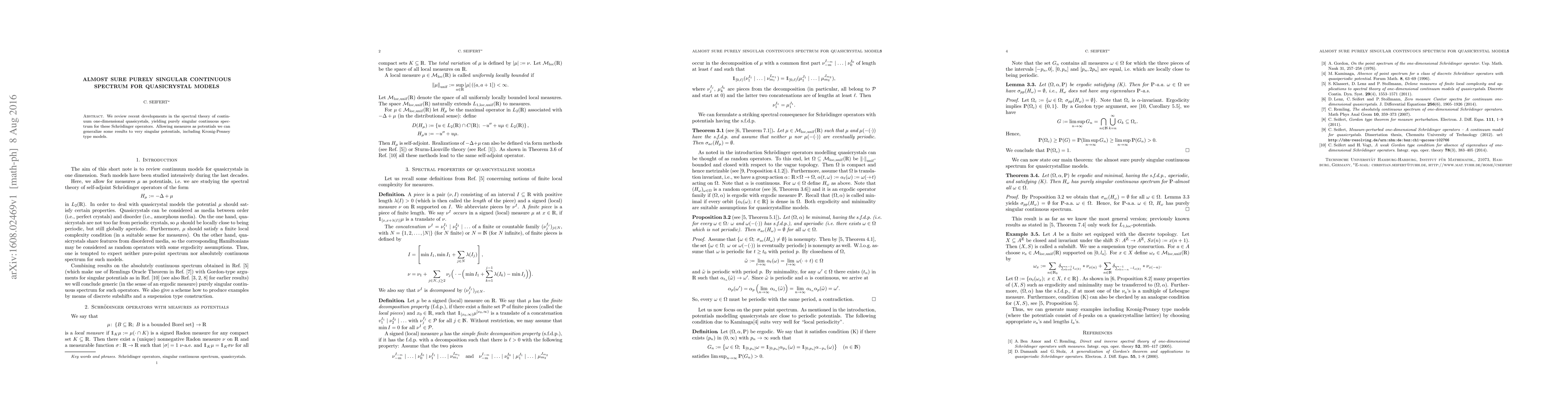 Summary: This paper explores the spectral theory of one-dimensional quasicrystal models, revealing almost sure purely singular continuous spectra for Schrödinger operators, with generalizations to highly singular potentials like Kronig-Penney models.