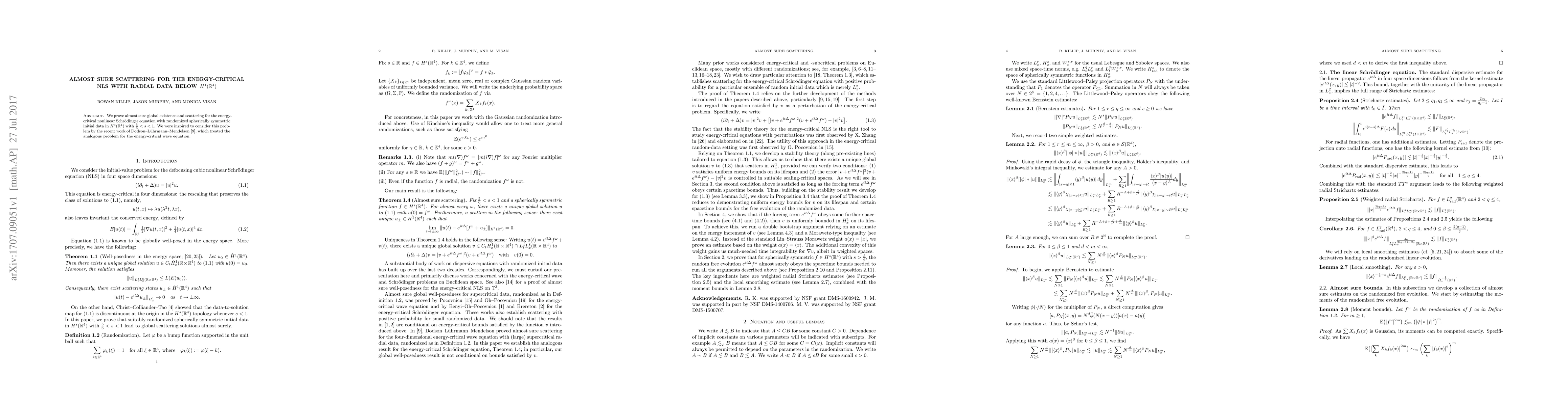 Researchers prove almost sure global existence and scattering for a specific type of nonlinear Schr"odinger equation with randomized initial data in certain function spaces, showing energy-critical behavior.