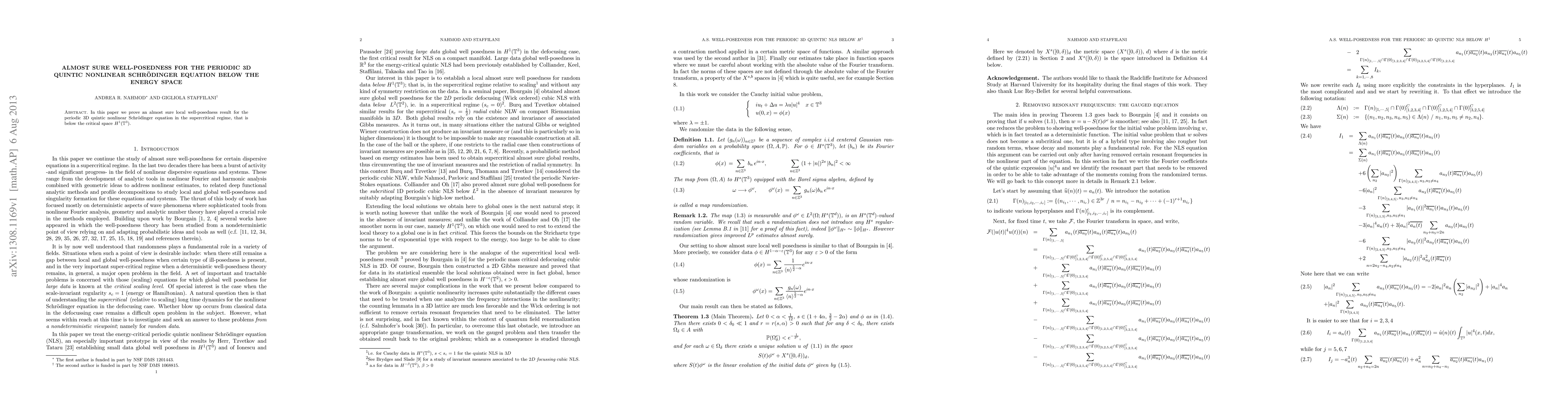 Summary: This paper establishes almost sure local well-posedness for the periodic 3D quintic nonlinear Schrödinger equation in the supercritical regime, specifically below the critical Sobolev space $H^1(\mathbb T^3)$. The result extends the understanding of the equation's behavior in lower regularity settings.