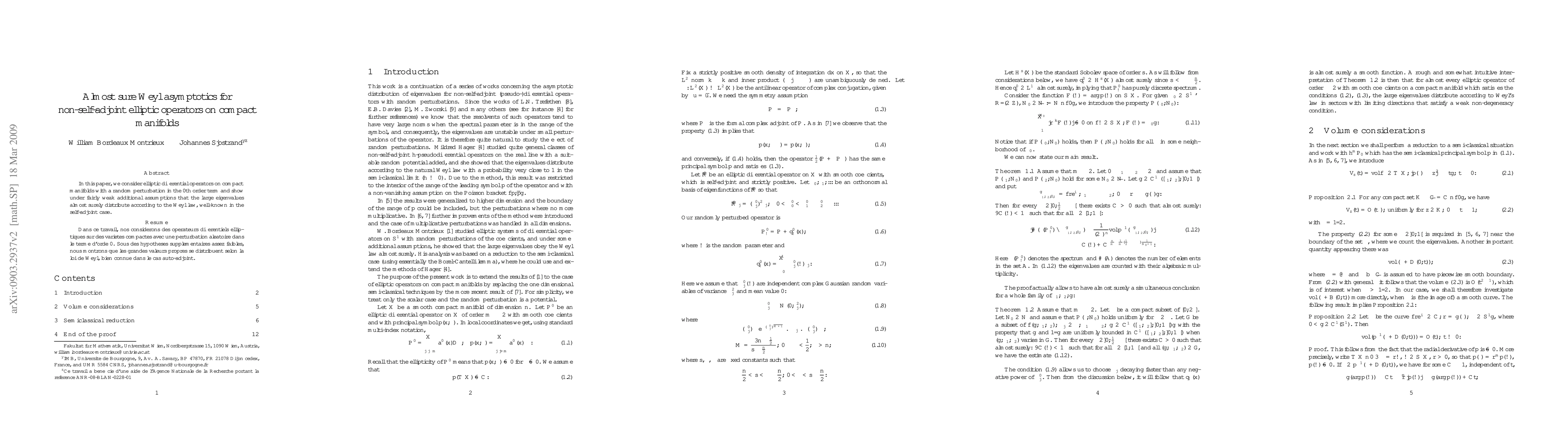 Summary: This paper investigates elliptic differential operators on compact manifolds with random perturbations, proving that under mild conditions, the large eigenvalues almost surely follow the Weyl law typically observed in self-adjoint cases.