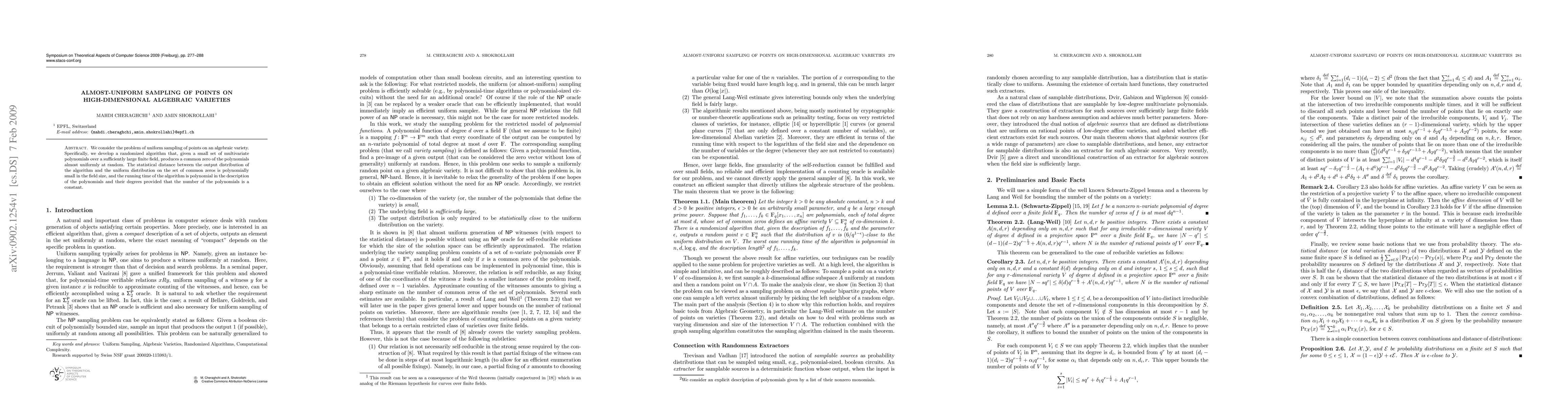 We consider the problem of uniform sampling of points on an algebraic variety. Specifically, we develop a randomized algorithm that, given a small set of multivariate polynomials over a sufficiently large finite field, produces a common zero of the polynomials almost uniformly at random. The statistical distance between the output distribution of the algorithm and the uniform distribution on the set of common zeros is polynomially small in the field size, and the running time of the algorithm is polynomial in the description of the polynomials and their degrees provided that the number of the polynomials is a constant.