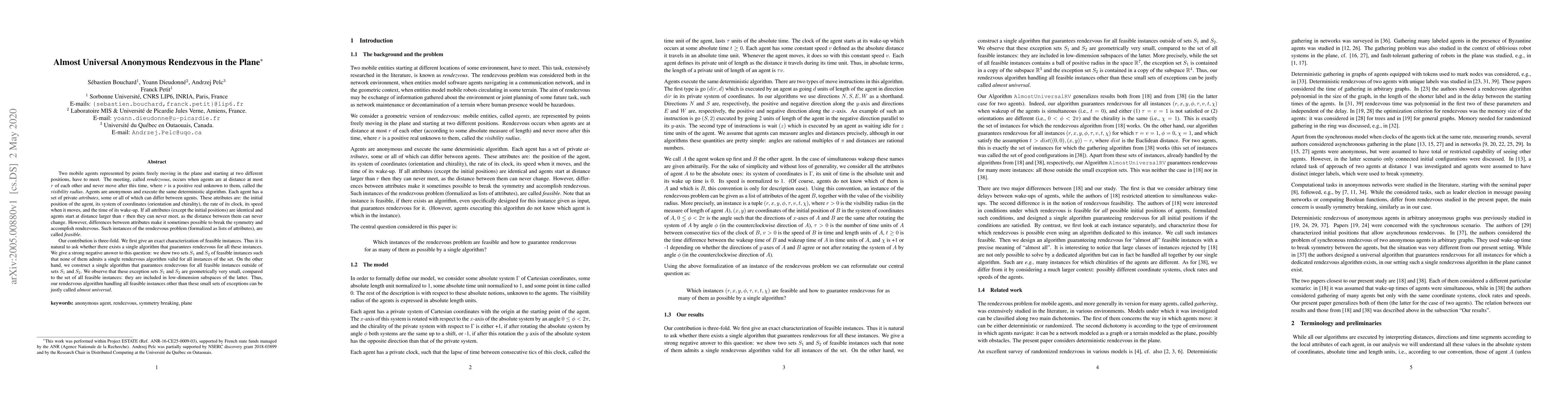 Two mobile agents represented by points freely moving in the plane and starting at two distinct positions, have to meet. The meeting, called rendezvous, occurs when agents are at distance at most $r$ of each other and never move after this time, where $r$ is a positive real unknown to them, called the visibility radius. Agents are anonymous and execute the same deterministic algorithm. Each agent has a set of private attributes, some or all of which can differ between agents. These attributes are: the initial position of the agent, its system of coordinates (orientation and chirality), the rate of its clock, its speed when it moves, and the time of its wake-up. If all attributes (except the initial positions) are identical and agents start at distance larger than $r$ then they can never meet. However, differences between attributes make it sometimes possible to break the symmetry and accomplish rendezvous. Such instances of the rendezvous problem (formalized as lists of attributes), are called feasible. Our contribution is three-fold. We first give an exact characterization of feasible instances. Thus it is natural to ask whether there exists a single algorithm that guarantees rendezvous for all these instances. We give a strong negative answer to this question: we show two sets $S_1$ and $S_2$ of feasible instances such that none of them admits a single rendezvous algorithm valid for all instances of the set. On the other hand, we construct a single algorithm that guarantees rendezvous for all feasible instances outside of sets $S_1$ and $S_2$. We observe that these exception sets $S_1$ and $S_2$ are geometrically very small, compared to the set of all feasible instances: they are included in low-dimension subspaces of the latter. Thus, our rendezvous algorithm handling all feasible instances other than these small sets of exceptions can be justly called almost universal.