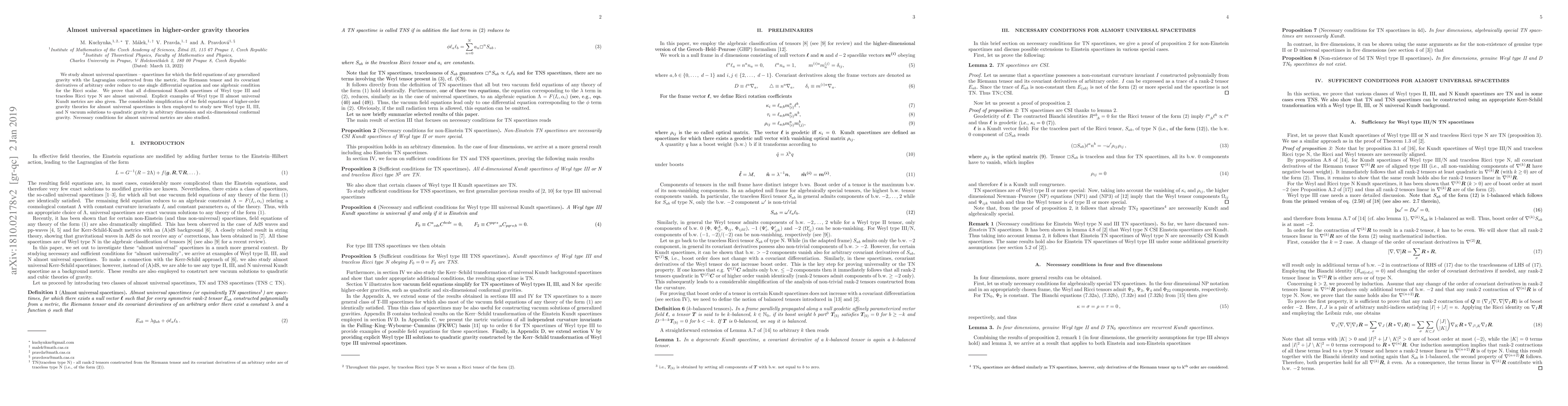 We study almost universal spacetimes - spacetimes for which the field equations of any generalized gravity with the Lagrangian constructed from the metric, the Riemann tensor and its covariant derivatives of arbitrary order reduce to one single differential equation and one algebraic condition for the Ricci scalar. We prove that all d-dimensional Kundt spacetimes of Weyl type III and traceless Ricci type N are almost universal. Explicit examples of Weyl type II almost universal Kundt metrics are also given. The considerable simplification of the field equations of higher-order gravity theories for almost universal spacetimes is then employed to study new Weyl type II, III, and N vacuum solutions to quadratic gravity in arbitrary dimension and six-dimensional conformal gravity. Necessary conditions for almost universal metrics are also studied.