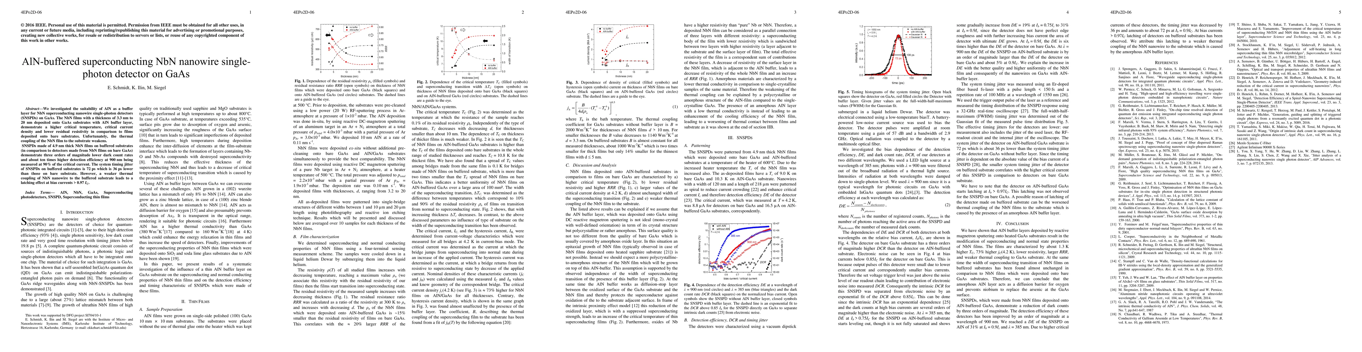 This study explores AlN-buffered GaAs substrates for NbN superconducting nanowire single-photon detectors (SNSPDs), revealing improved critical temperature, current density, and detection efficiency, but also highlights a latching effect due to weaker thermal coupling.