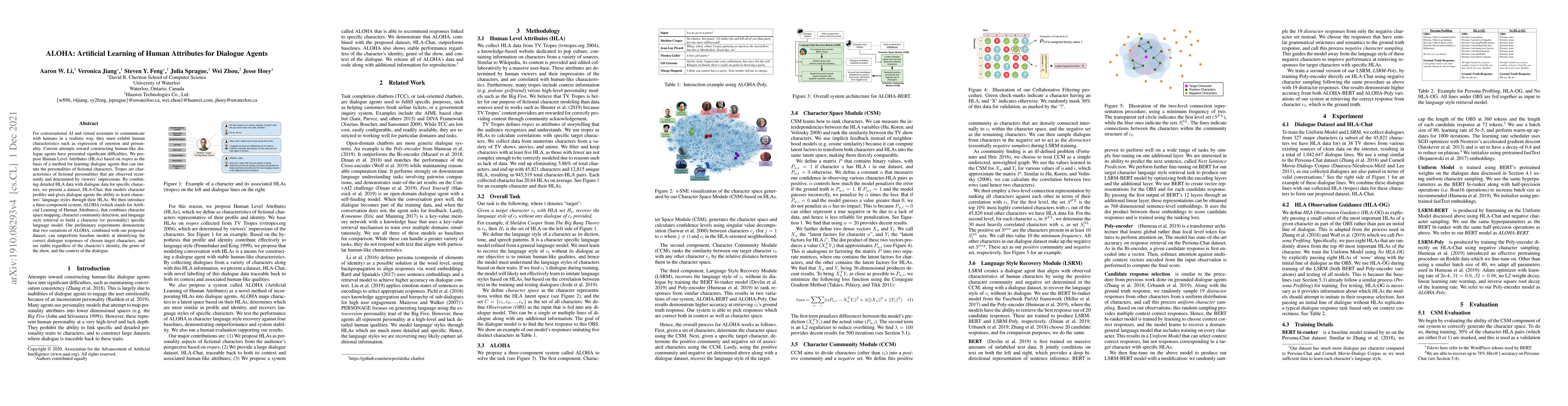The paper proposes ALOHA, a method for creating dialogue agents that mimic human personalities using Human Level Attributes (HLAs) based on fictional character tropes. The HLA-Chat dataset models character profiles, enabling agents to learn language styles through HLAs, and ALOHA's three-component system enhances dialogue response accuracy and stability across different characters and contexts.