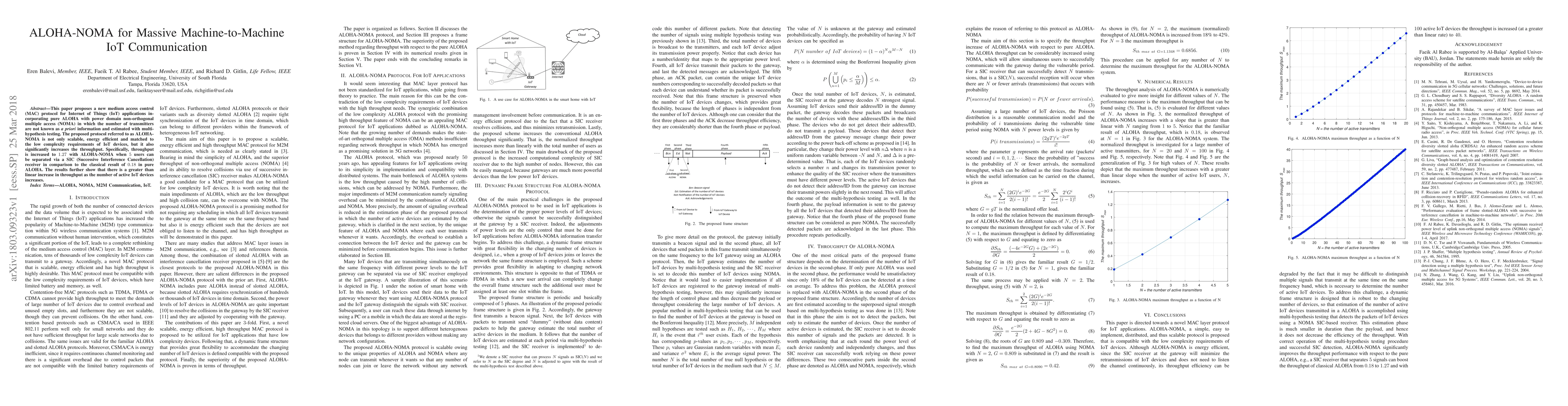 ALOHA-NOMA combines the simplicity of ALOHA with the high-throughput potential of NOMA, tailored for IoT's low-complexity requirements, offering a novel approach to MAC protocols in massive machine-to-machine communications.