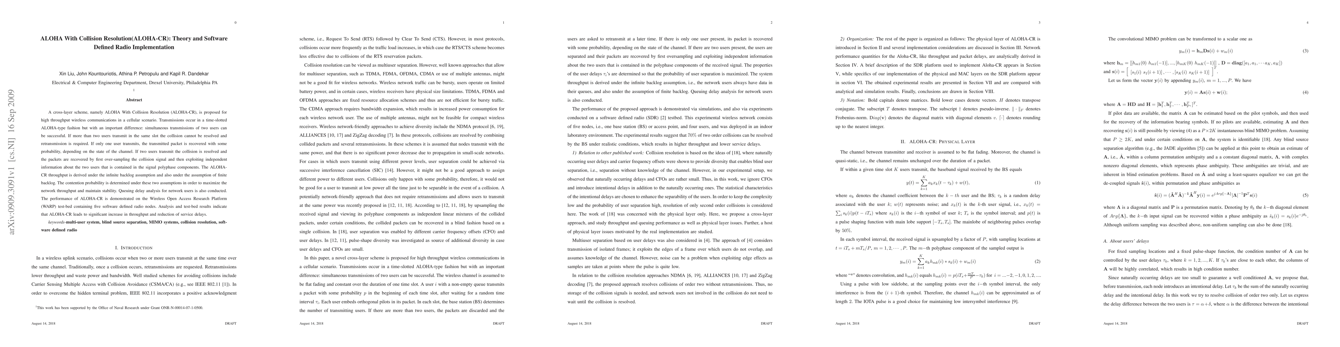A cross-layer scheme, namely ALOHA With Collision Resolution (ALOHA-CR), is proposed for high throughput wireless communications in a cellular scenario. Transmissions occur in a time-slotted ALOHA-type fashion but with an important difference: simultaneous transmissions of two users can be successful. If more than two users transmit in the same slot the collision cannot be resolved and retransmission is required. If only one user transmits, the transmitted packet is recovered with some probability, depending on the state of the channel. If two users transmit the collision is resolved and the packets are recovered by first over-sampling the collision signal and then exploiting independent information about the two users that is contained in the signal polyphase components. The ALOHA-CR throughput is derived under the infinite backlog assumption and also under the assumption of finite backlog. The contention probability is determined under these two assumptions in order to maximize the network throughput and maintain stability. Queuing delay analysis for network users is also conducted. The performance of ALOHA-CR is demonstrated on the Wireless Open Access Research Platform (WARP) test-bed containing five software defined radio nodes. Analysis and test-bed results indicate that ALOHA-CR leads to significant increase in throughput and reduction of service delays.