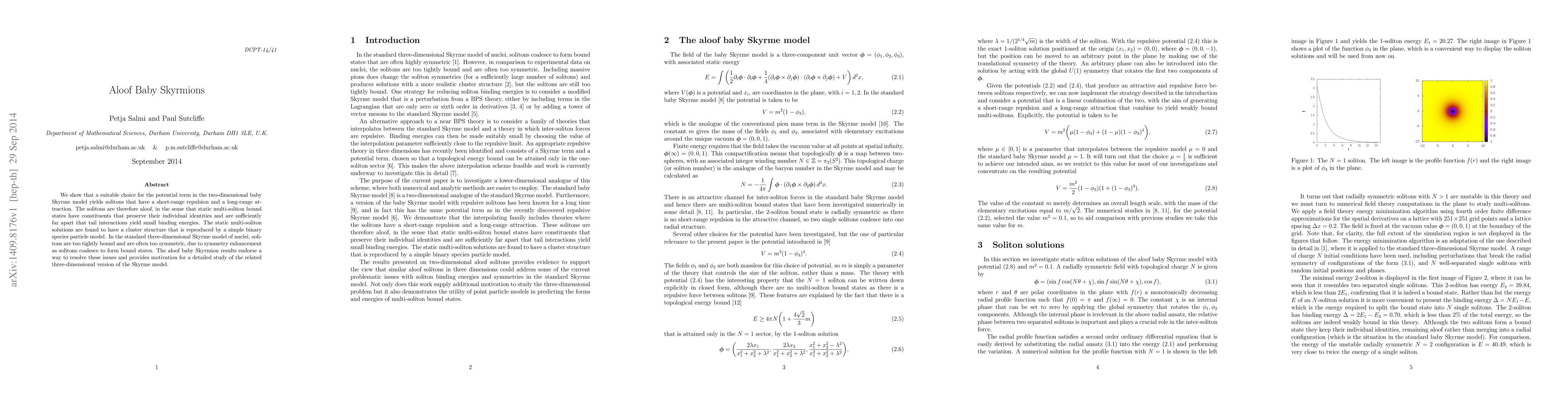 We show that a suitable choice for the potential term in the two-dimensional baby Skyrme model yields solitons that have a short-range repulsion and a long-range attraction. The solitons are therefore aloof, in the sense that static multi-soliton bound states have constituents that preserve their individual identities and are sufficiently far apart that tail interactions yield small binding energies. The static multi-soliton solutions are found to have a cluster structure that is reproduced by a simple binary species particle model. In the standard three-dimensional Skyrme model of nuclei, solitons are too tightly bound and are often too symmetric, due to symmetry enhancement as solitons coalesce to form bound states. The aloof baby Skyrmion results endorse a way to resolve these issues and provides motivation for a detailed study of the related three-dimensional version of the Skyrme model.
