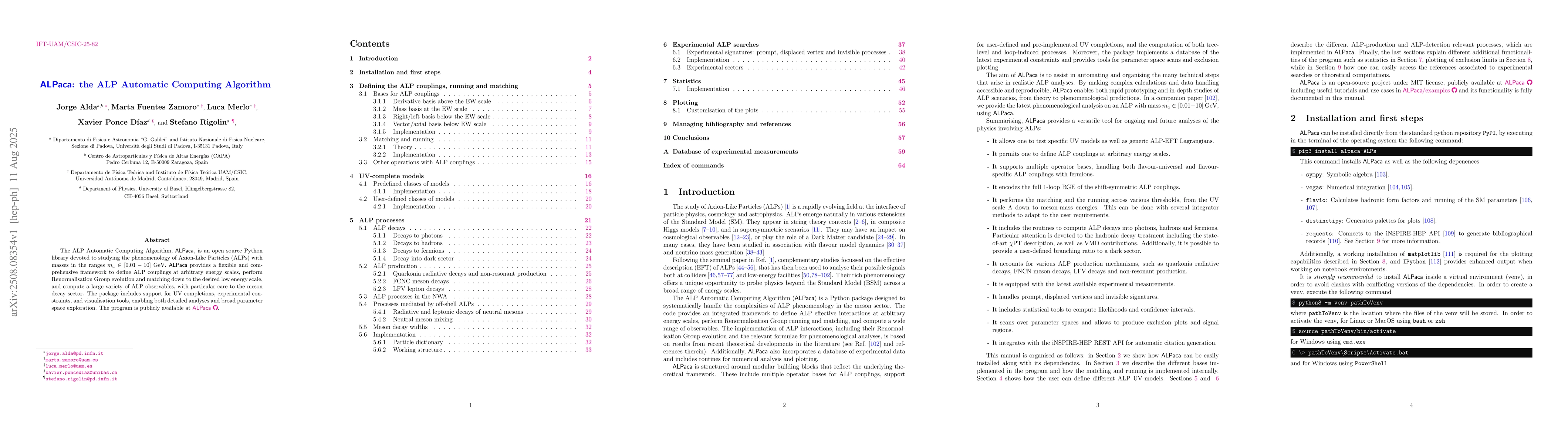 ALPaca's main technical contribution is the provision of a comprehensive, flexible, and user-friendly Python library for the phenomenological study of Axion-Like Particles, covering theoretical calculations, statistical analysis, and visualization of results.