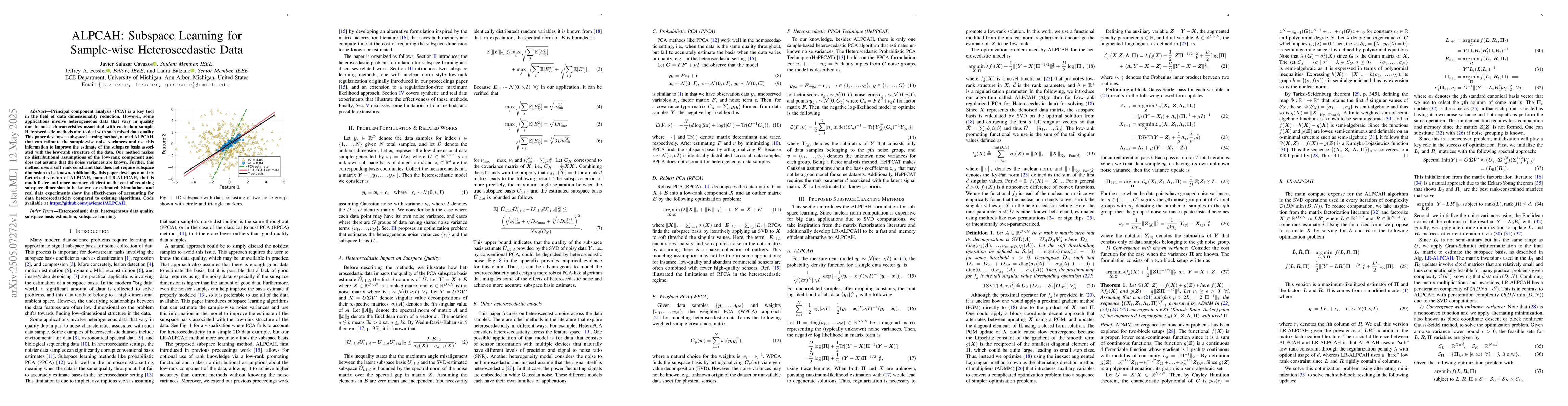 The paper develops ALPCAH, a subspace learning method that estimates sample-wise noise variances to improve subspace basis estimation for low-rank data structures. Additionally, it introduces a matrix factorized version, LR-ALPCAH, which is faster and more memory-efficient but requires known or estimated subspace dimension.