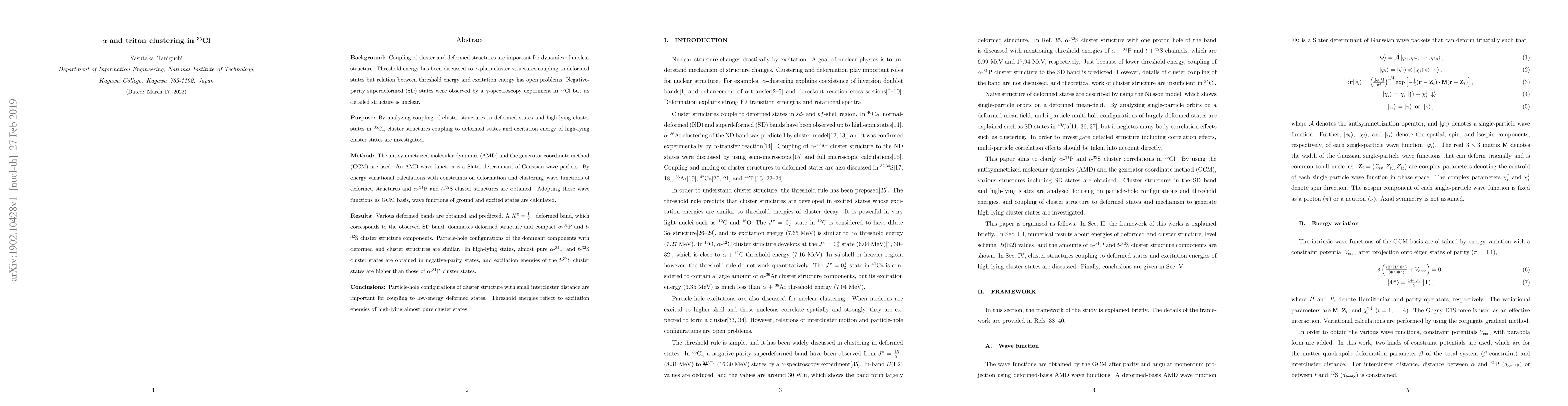 The research uses antisymmetrized molecular dynamics (AMD) and generator coordinate method (GCM) to investigate cluster structures coupling to deformed states in $^{35}$Cl. Key findings include the dominance of a $K^pi = rac{1}{2}^-$ deformed band in negative-parity superdeformed states, and the observation of almost pure $alpha$- and $t$-cluster states in high-lying negative-parity states with $t$-cluster excitation energies being higher. The study concludes that particle-hole configurations of cluster structures with small intercluster distances are crucial for coupling to low-energy deformed states, and threshold energies reflect in excitation energies of high-lying pure cluster states.