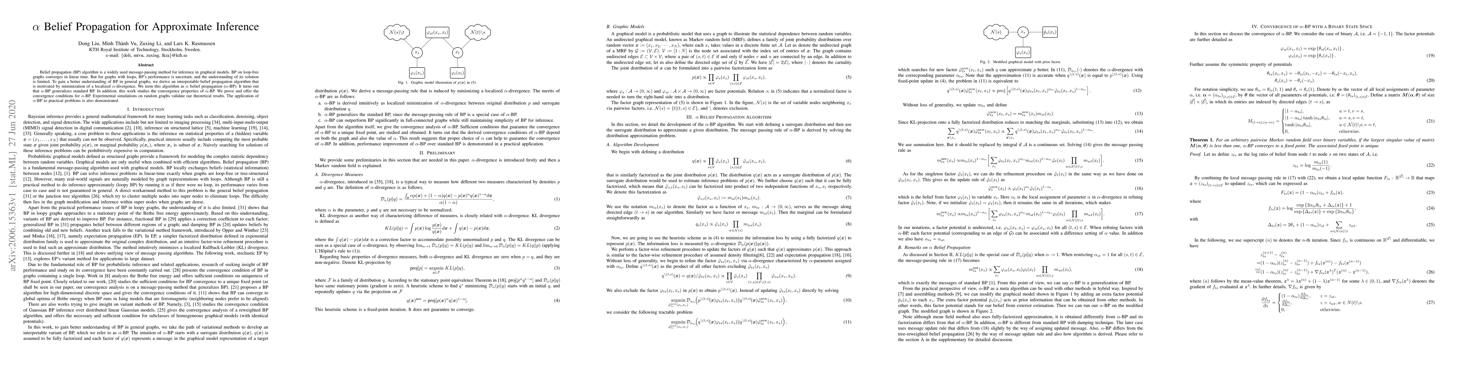 This paper introduces $\alpha$ belief propagation ($\alpha$-BP), an interpretable algorithm derived from minimizing a localized $\alpha$-divergence, which generalizes standard belief propagation and provides better understanding for inference in general graphical models. Theoretical convergence conditions are established, validated by simulations on random graphs, and applied to practical problems.